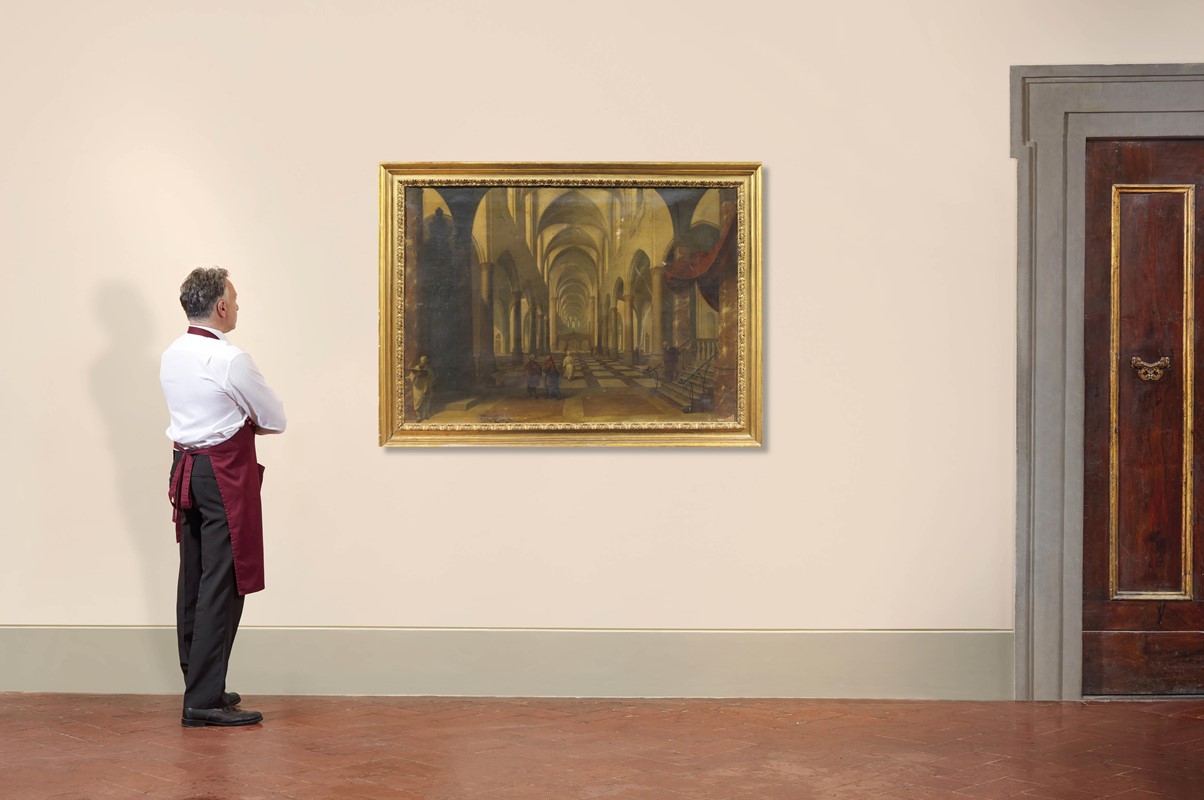INTERNO DI CHIESA CON FIGURE