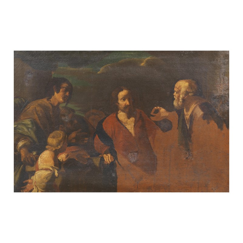 Scuola genovese, sec. XVIII IL TRIBUTO DELLA MONETA olio su tela, cm 54x79,5