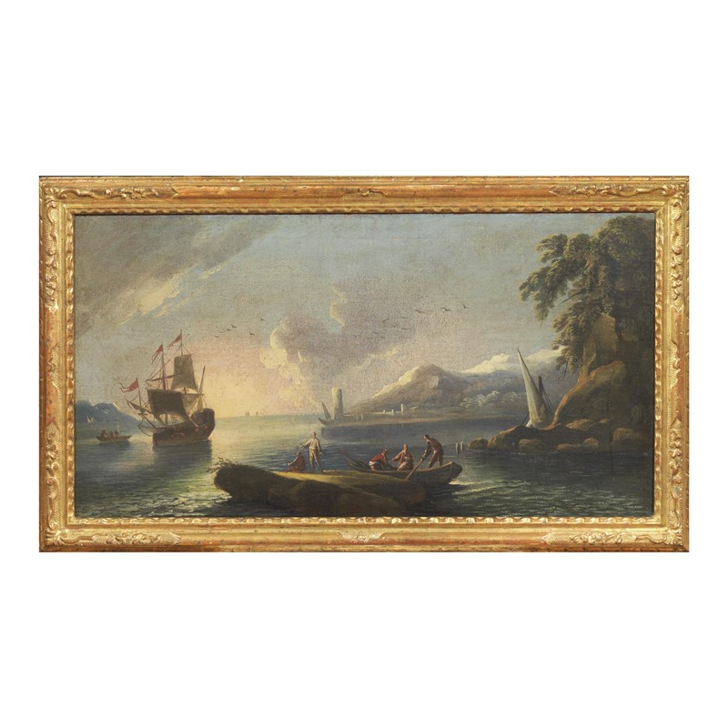 HARBOR VIEW WITH BOATMEN AND SHIPS