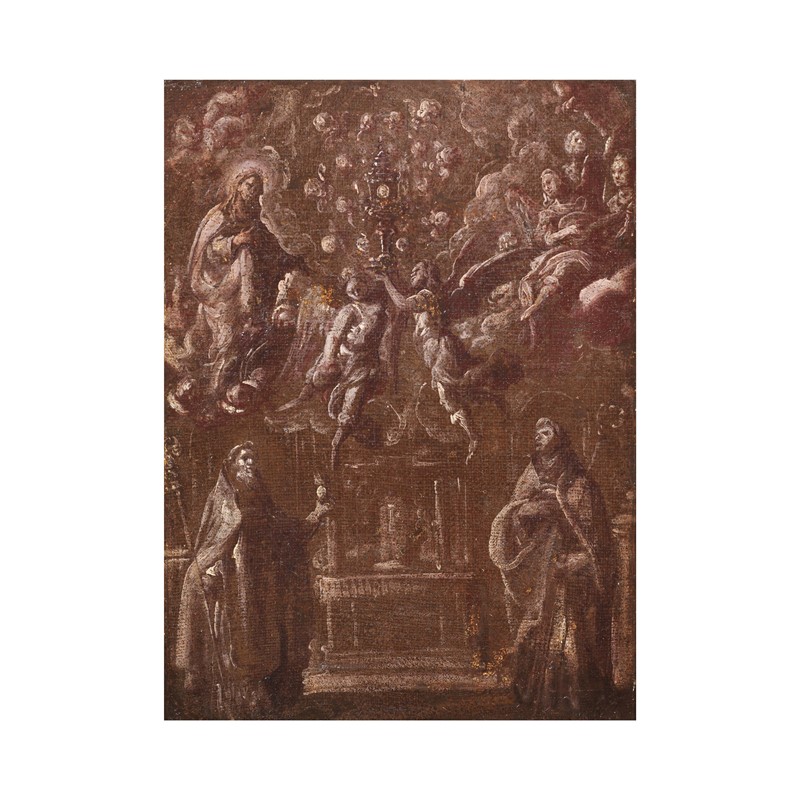 MADONNA IN GLORY WITH TWO SAINTS BISHOP AND ANGELS