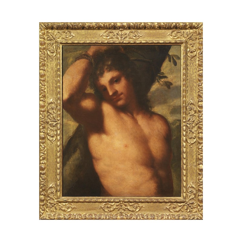 La languida interpretazione della tradizione pittorica veneziana cinquecentesca resa attraverso pennellate sfrangiate e un luminoso colorismo, congiuntamente alla tipologia del volto ispirato all’antico, portano ad avvicinare questo ammiccante San Sebastiano alla produzione di Pietro Liberi (Padova, 1614 – Venezia, 1687), artista prolifico e originale del Seicento veneziano. Dopo una prima formazione presso Alessandro Varotari, detto il Padovanino, e una giovinezza avventurosa passata tra i combattimenti contro i turchi e viaggi in Europa e in Italia, Liberi si afferma quale pittore tra i più richiesti sul territorio della Serenissima grazie proprio alla messa a punto di un riuscito linguaggio artistico, contemporaneo e di forte impatto, che fondeva lo stile barocco e colorista con colte citazioni.