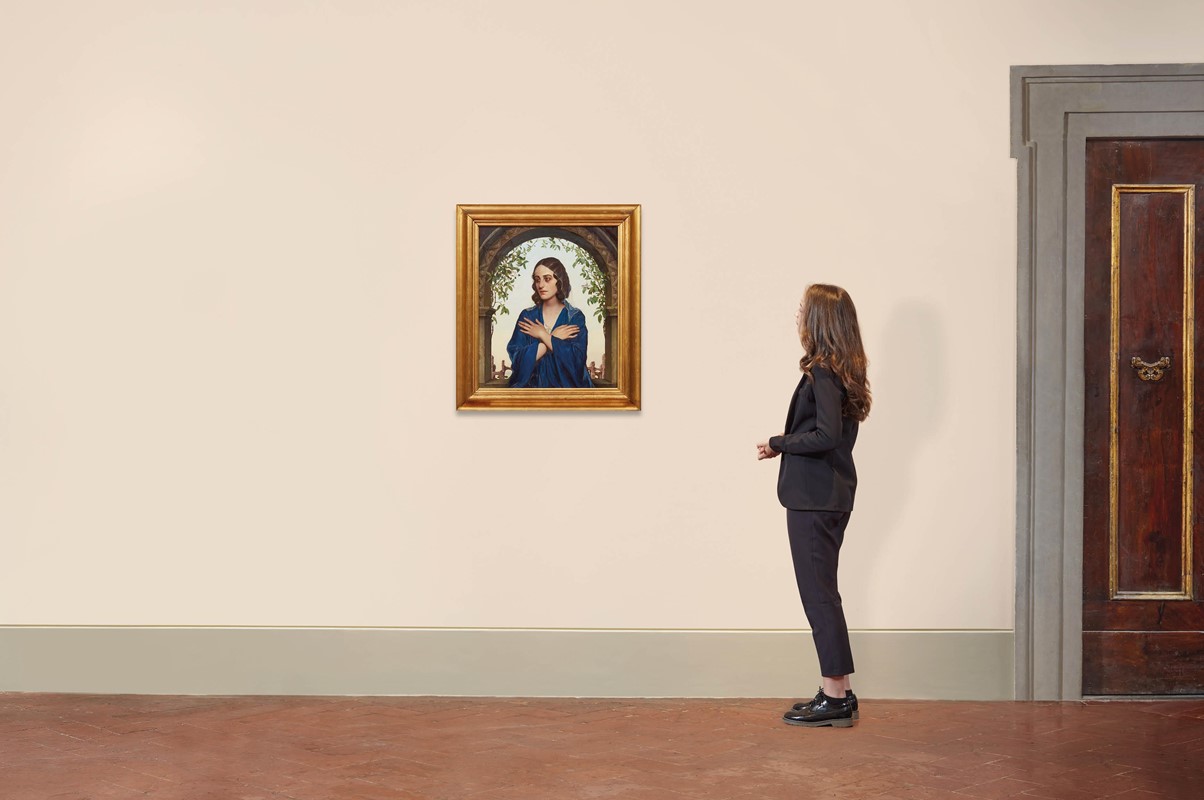 THE VIRGIN OF ROMAN CAMPAGNA oil on panel, 61x52.5 cm signed lower left and dated Roma 1931 lower right