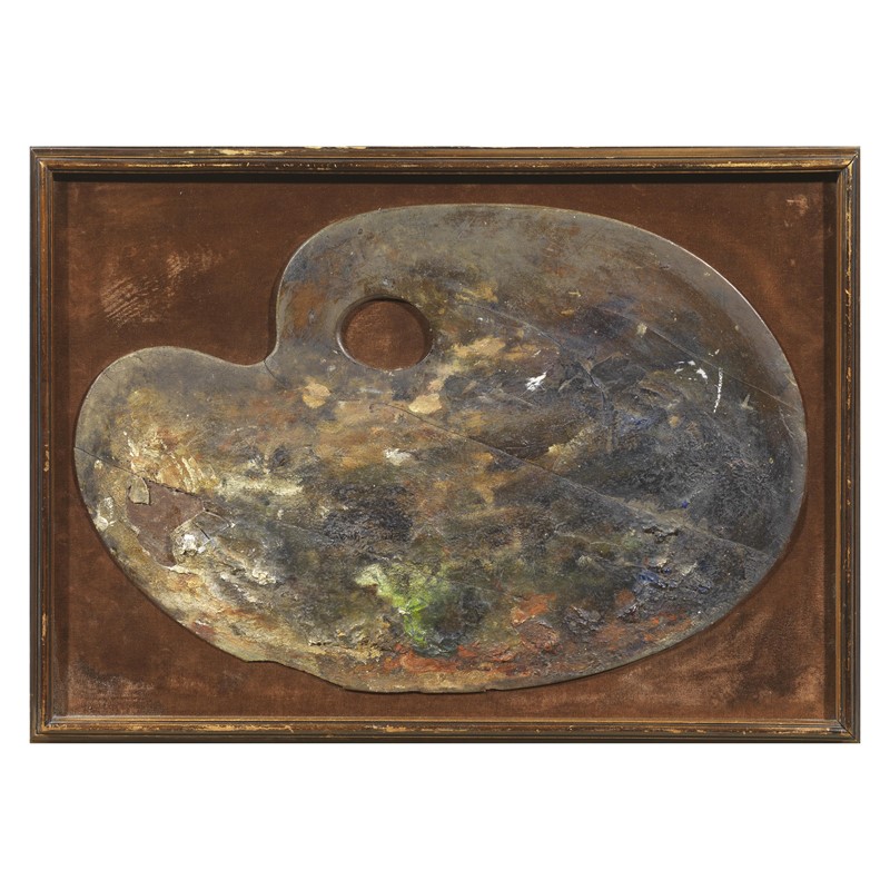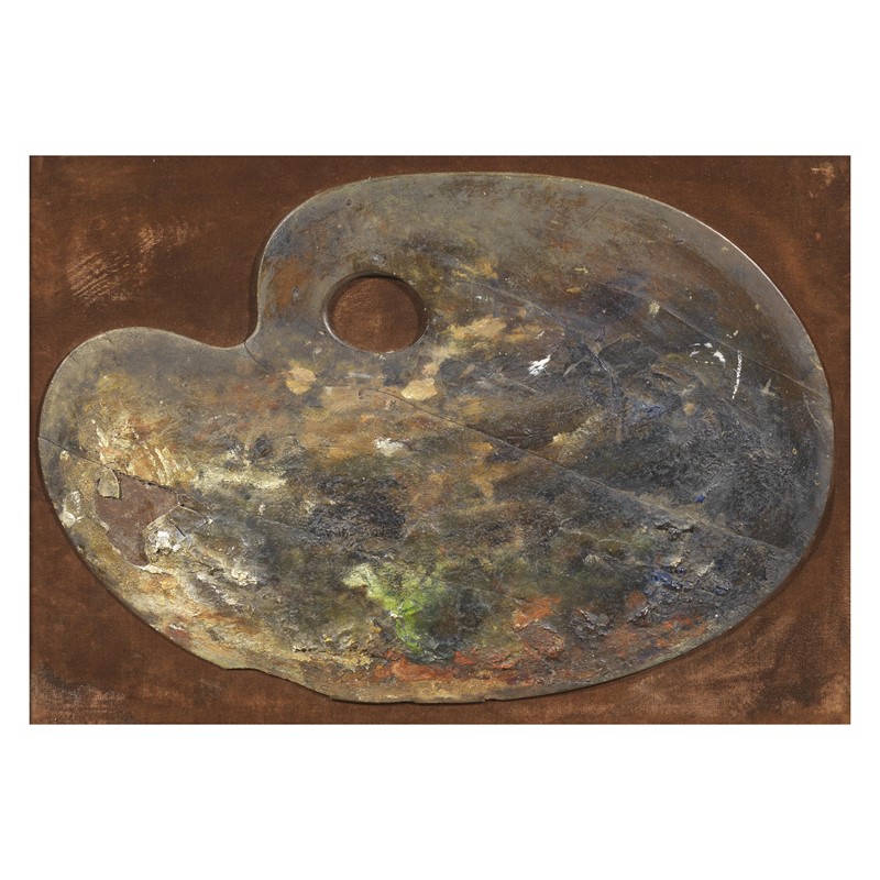 PALETTE wood laid down on fabric, 28x42.5 cm on the reverse: declaration of authenticity signed by Mario Finazzi