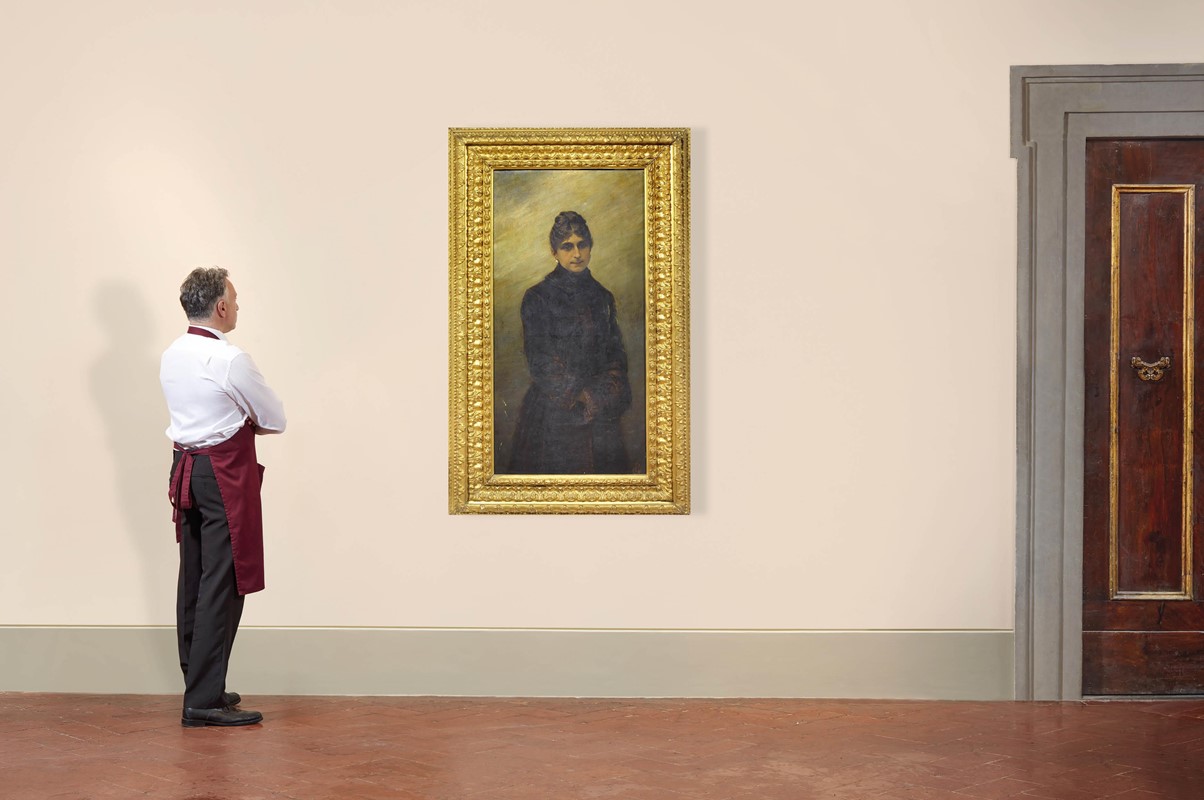 La Principessa Anna Maria Torlonia, ultima erede diretta del principe Alessandro, è qui ritratta dall’emiliano Giovanni Piancastelli. A Roma il pittore seppe infatti affermarsi nel mondo aristocratico, tanto come ritrattista quanto come consulente artistico, sino a divenire nel 1902 il primo direttore della Galleria Borghese. Anna Maria sposò nel 1872 Giulio Borghese, che in virtù di questo matrimonio divenne il secondo principe del Fucino assumendo il cognome Torlonia. La principessa morì nel 1901 all’età di soli quarantasei anni.