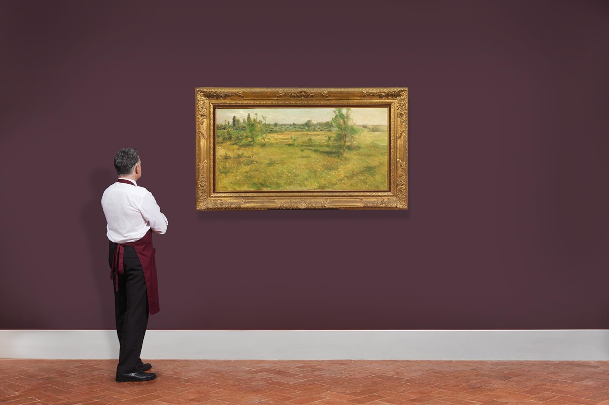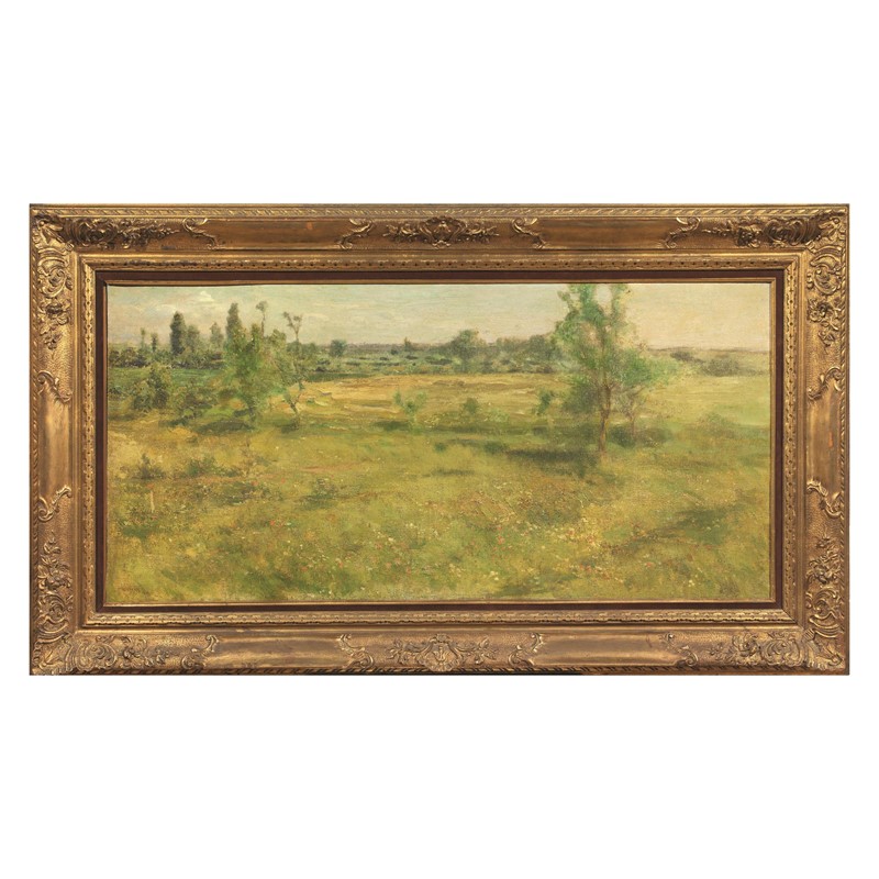 COUNTRYSIDE IN THE AREA OF THE RIVER SILE oil on canvas, 59x121 cm signed and dated 1899 lower left on the reverse: inscribed Per autenticità / Beppe Ciardi / 1899