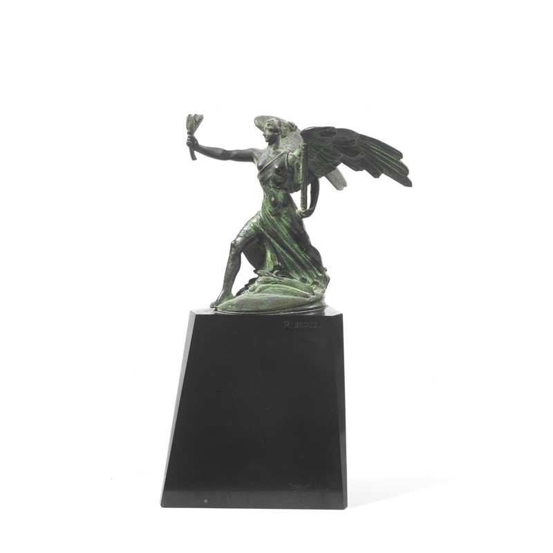 bronzo su base troncopiramidale inmarmo nero, cm 27
