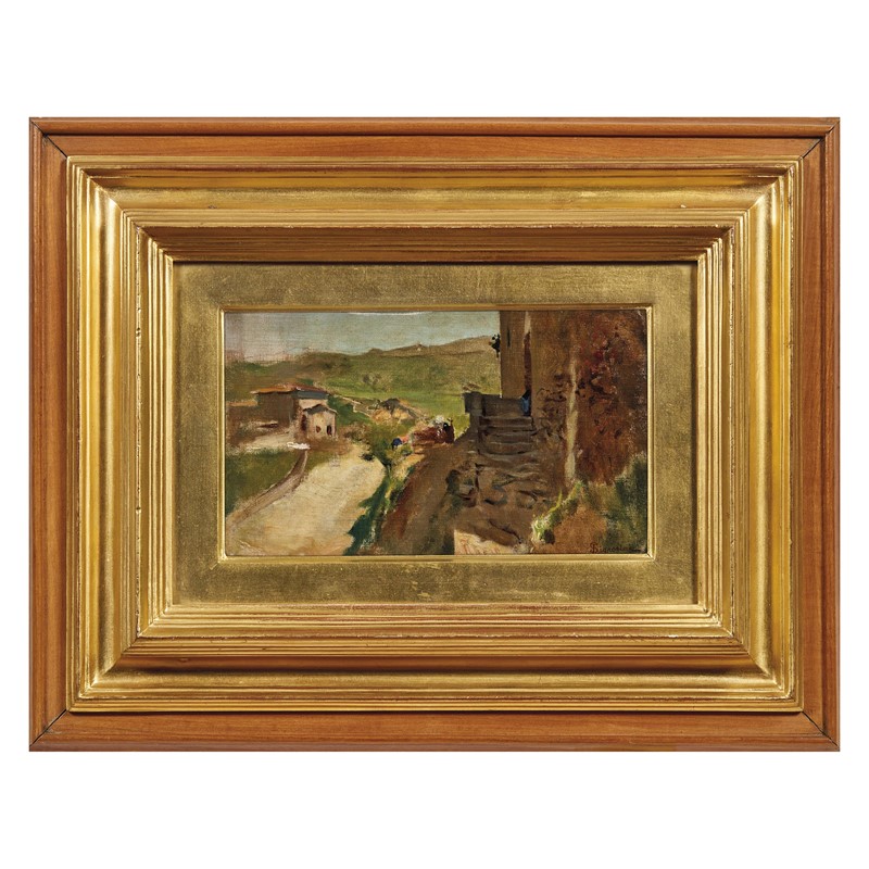 Il bozzetto che presentiamo in questa vendita è da collegarsi agli studi di paesaggio della zona di Vinci che il maestro toscano eseguì in funzione della stesura del grande dipinto I discendenti di Leonardo, eseguito nel 1874.
