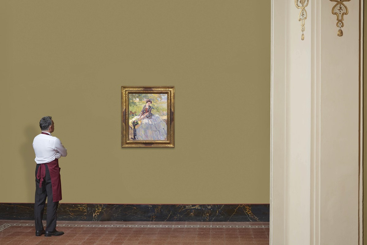 Ulisse Caputo (Salerno 1872 - Parigi 1948) DONNA NEL VERDE olio su tela, cm 73x60 retro: iscritto opera autentica di mio/ padre Ulisse Caputo eseguita/ a Aix en provence nel 1920/ Aldo Caputo