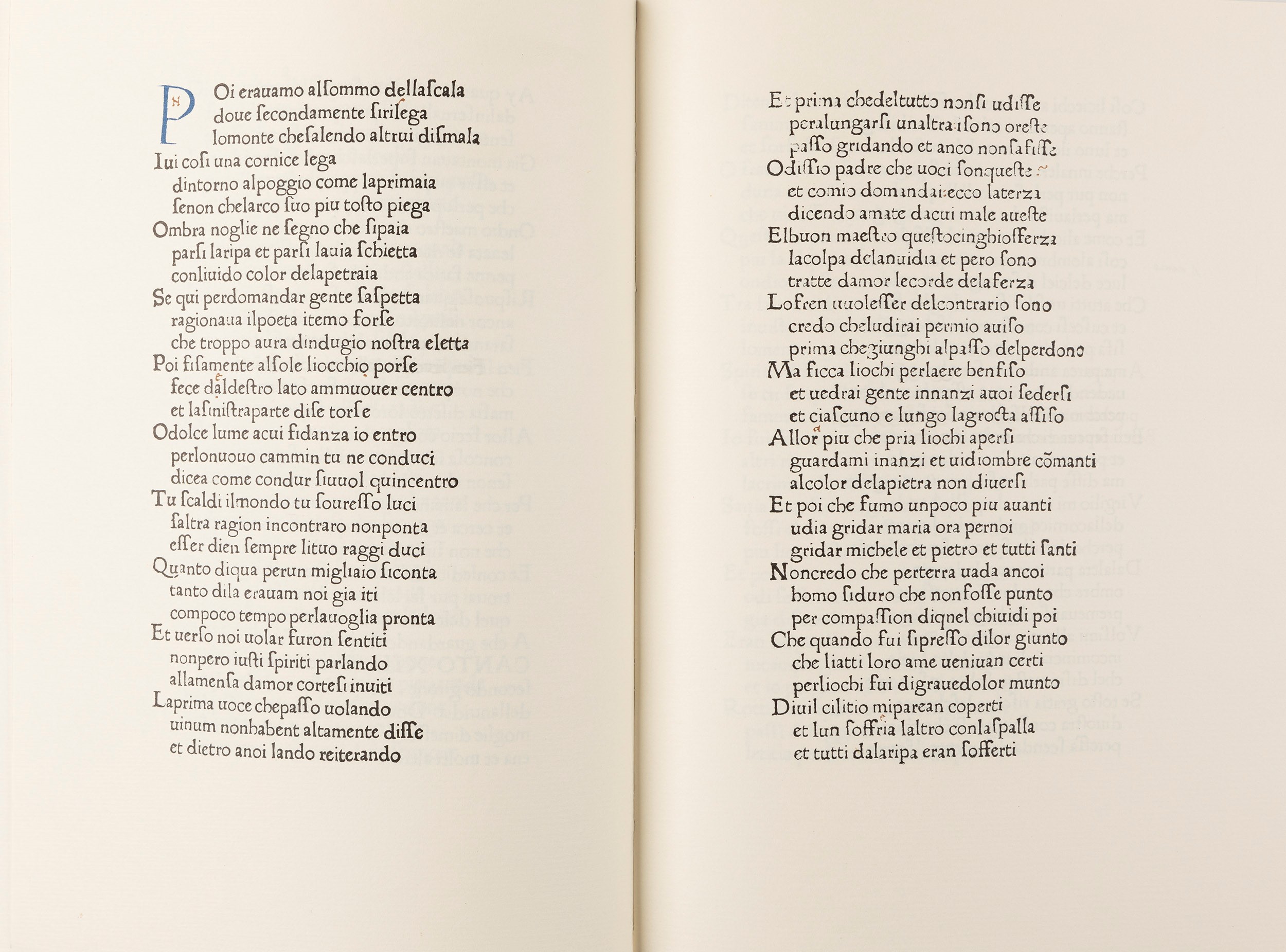 1965 Roma, Stabilimento tipografico Julia, 1965. 290 x 205 mm. Legatura in pelle blu con cornici in oro ai piatti e al dorso. Riproduzione in facsimile dell'esemplare Corsiniano della prima edizione della Divina Commedia stampata a Foligno l'11 aprile 1472 da Johann Numeister ed Evangelista Angelini da Trevi. Esemplare n.68. Con note di Emanuele Casamassima.