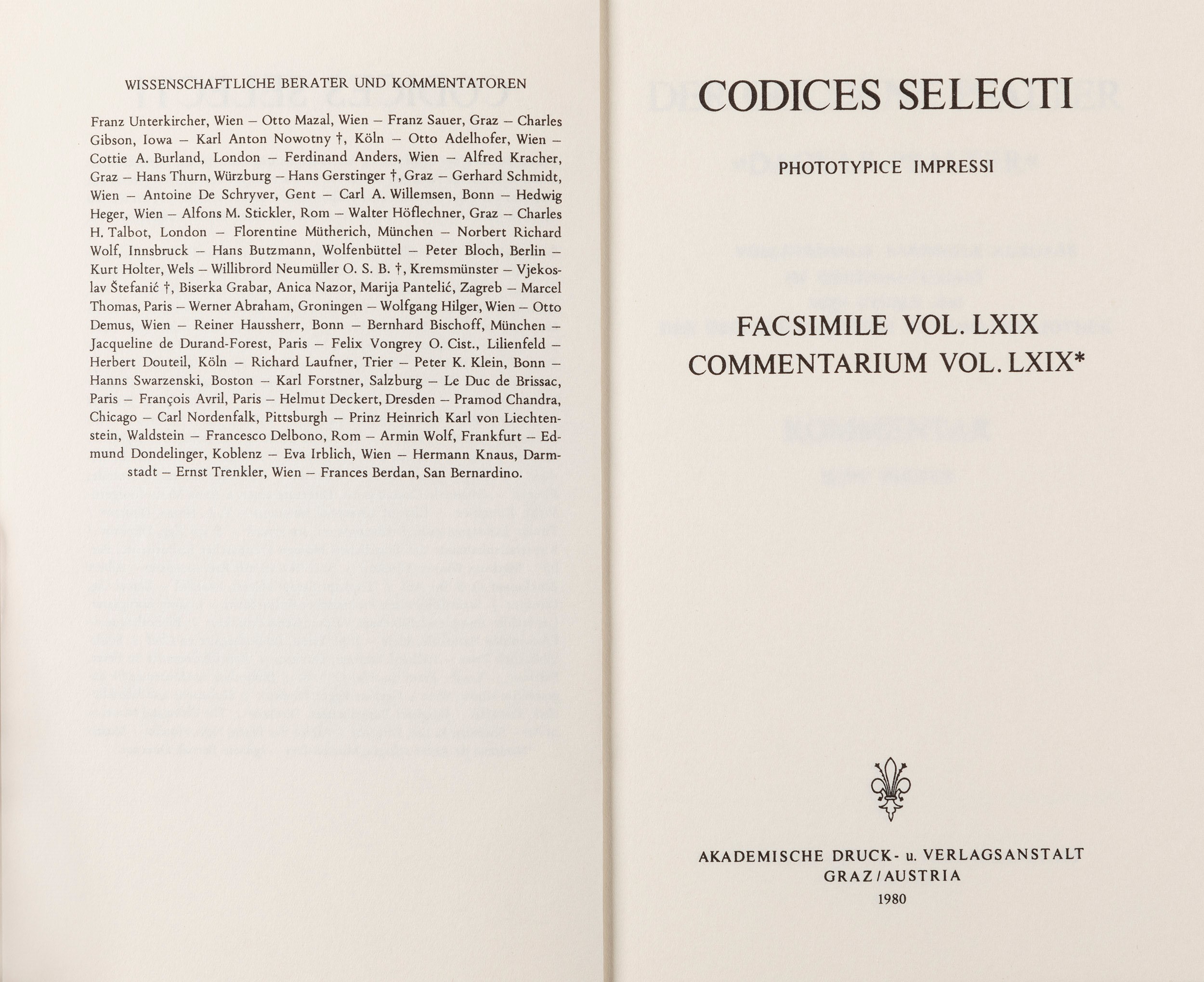 1980 Graz, Akademische Druck Verlagsanstalt, 1980. Legatura in piena tela blu. Commentario a cura di Kurt Holter. 193 x 120 mm. Esemplare 101/700.