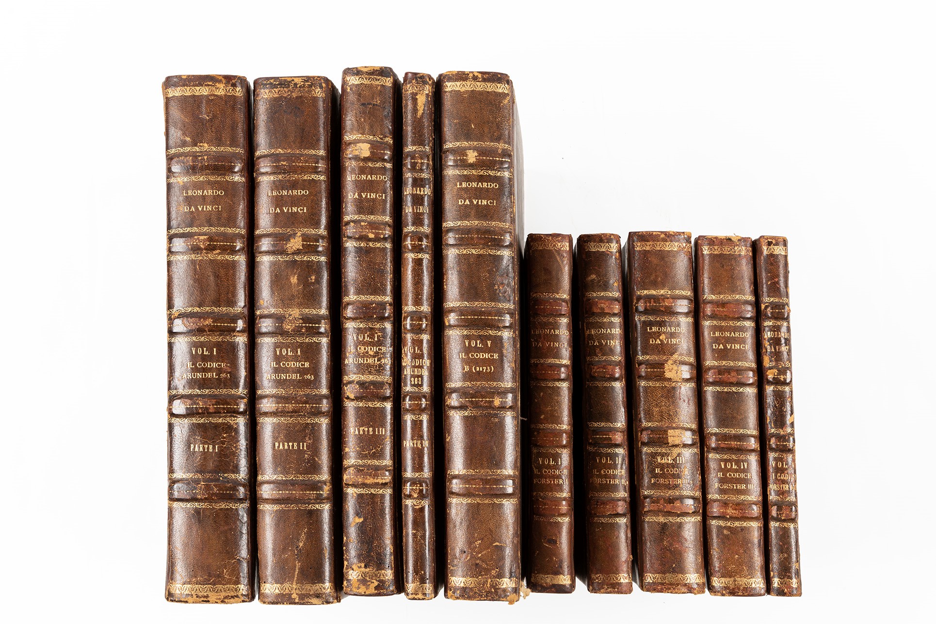 1923-1930 Roma, Danesi editore, 1923. 4 voll. 389 x 270 mm. Tracce di umidità al margine delle prime carte, esemplare in barbe, legatura in mezza pelle e cartone. Ex libris di Egisto Amore. - Il Codice Forster. Roma, Danesi, 1930. 5 voll. 272 x 190 mm. Legatura in mezza pelle e cartone. Ex libris di Egisto Amore, e bookplate della libreria Rappaport di Roma. Insieme nel lotto la riproduzione del Codice B (2173) nell'Istituto di Francia, Roma, Libreria dello Stato, 1941.