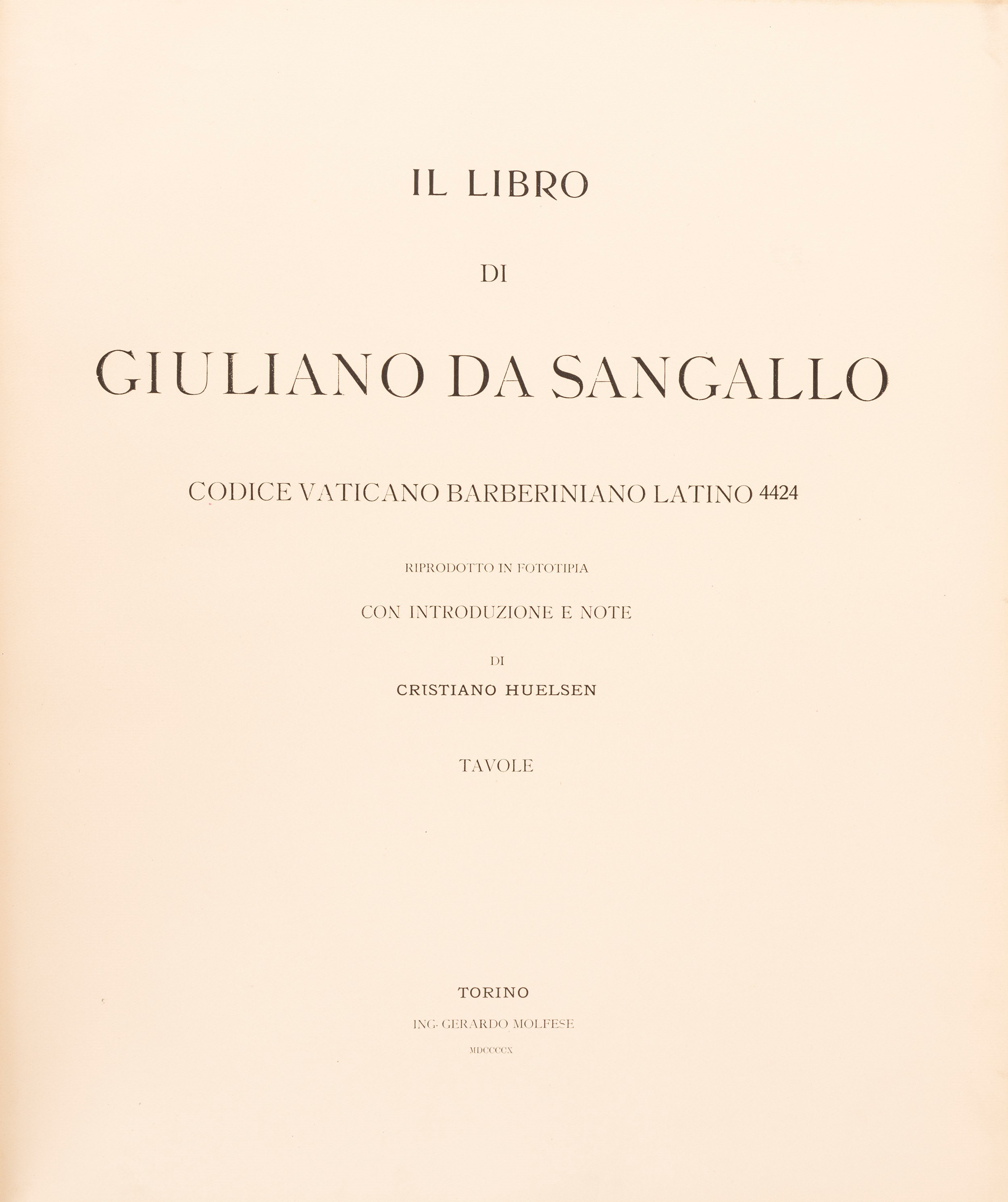 1910 Torino, Ing. Gerardo Molfese, 1910. 610 x 510 mm. Legatura editoriale in mezza pelle e cartone, stemma pontificio impresso.
