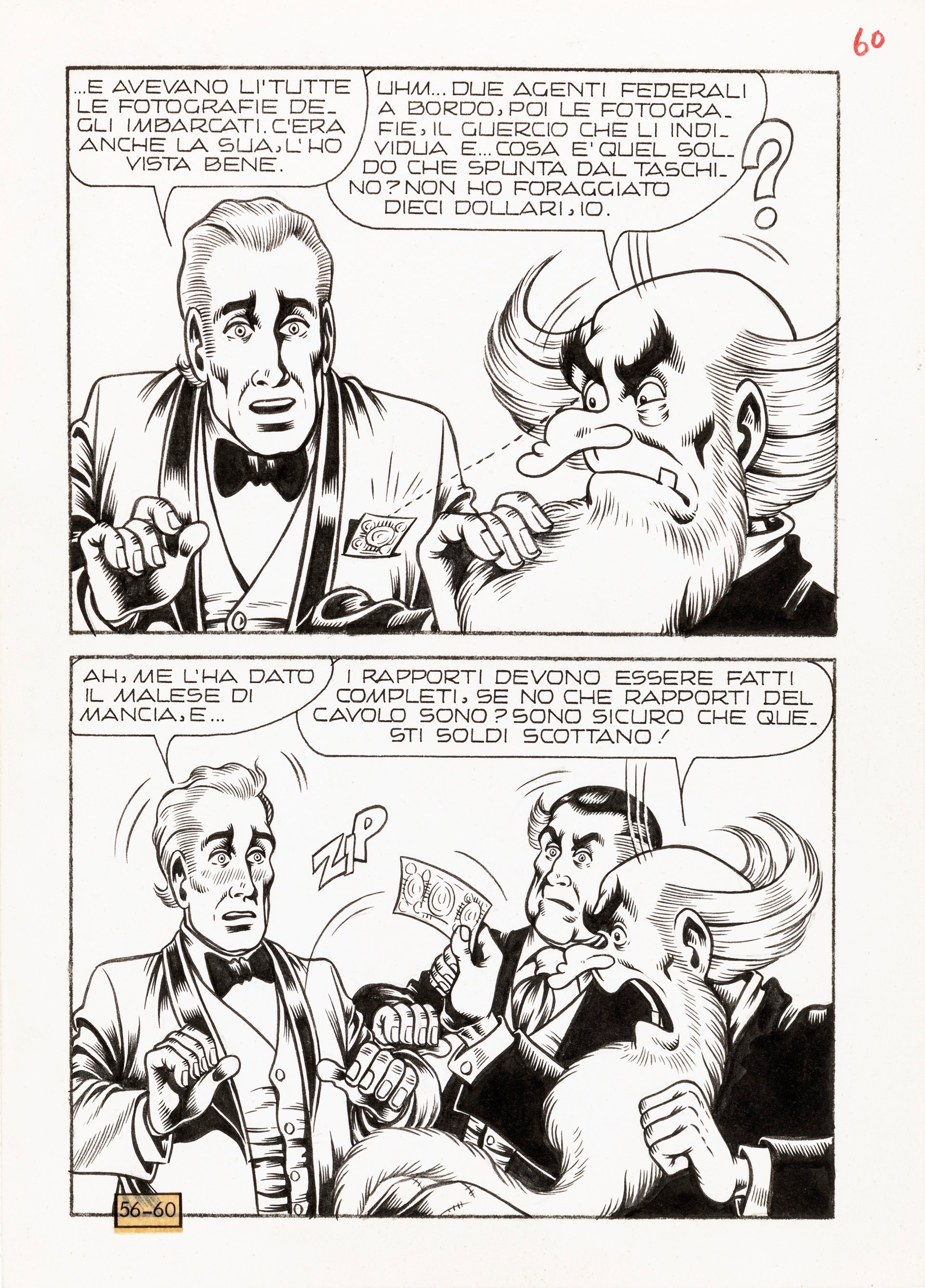 1974 Tavola originale realizzata da Magnus per Vuoi venire in crociera con me?, edita su Alan Ford n. 56 a pag. 60 dall'Editoriale Corno nel 1974.
