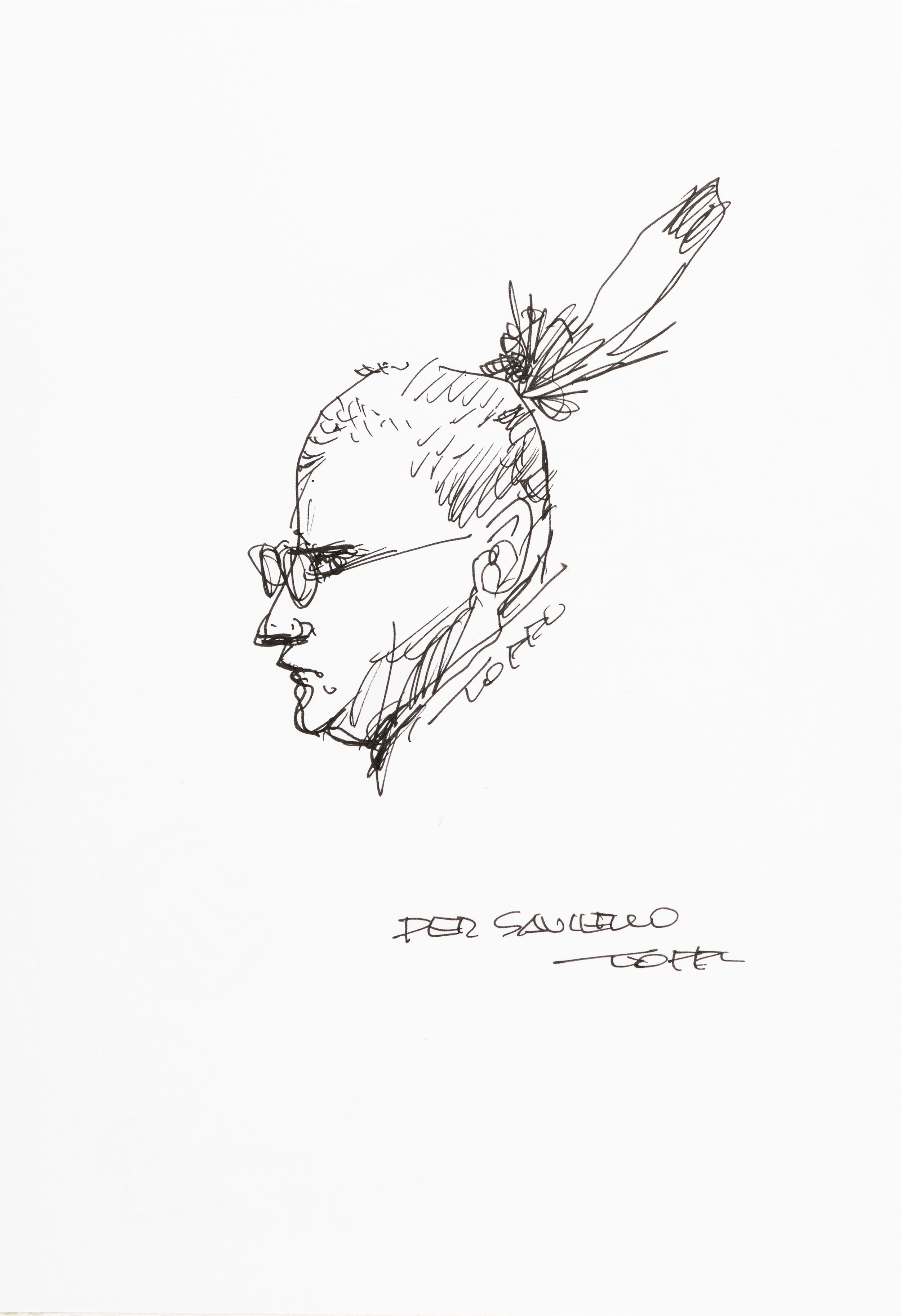 2008 Autoritratto originale realizzato da Toppi in occasione dell'edizione di Lucca Comics del 2008. Proveniente dalla collezione di Saverio Bruschini (tra i fondatori della manifestazione). Firmato e dedicato.