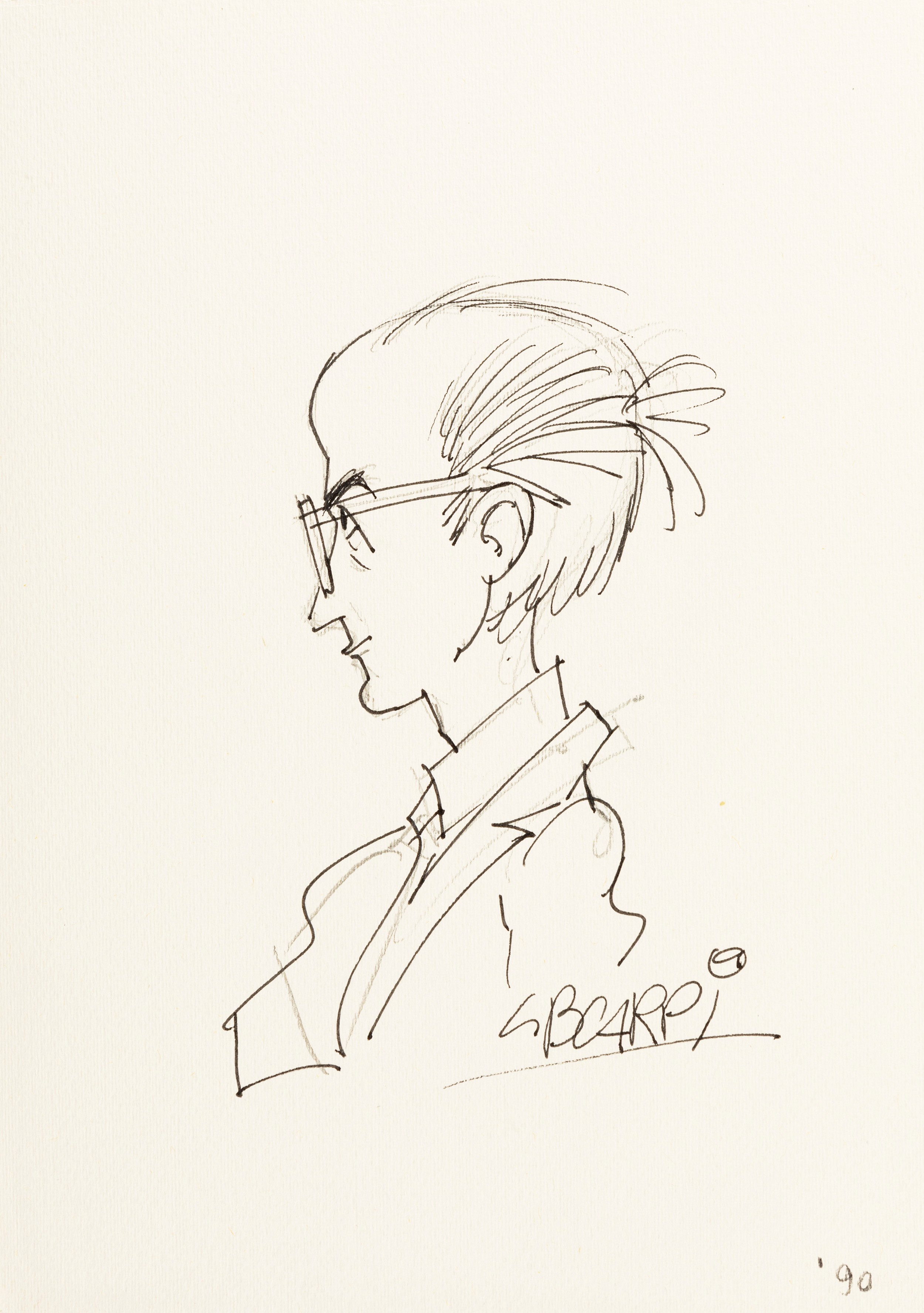 1990 Autoritratto originale realizzato da Carpi in occasione dell'edizione di Lucca Comics del 1990. Proveniente dalla collezione di Saverio Bruschini (tra i fondatori della manifestazione). Firmato.