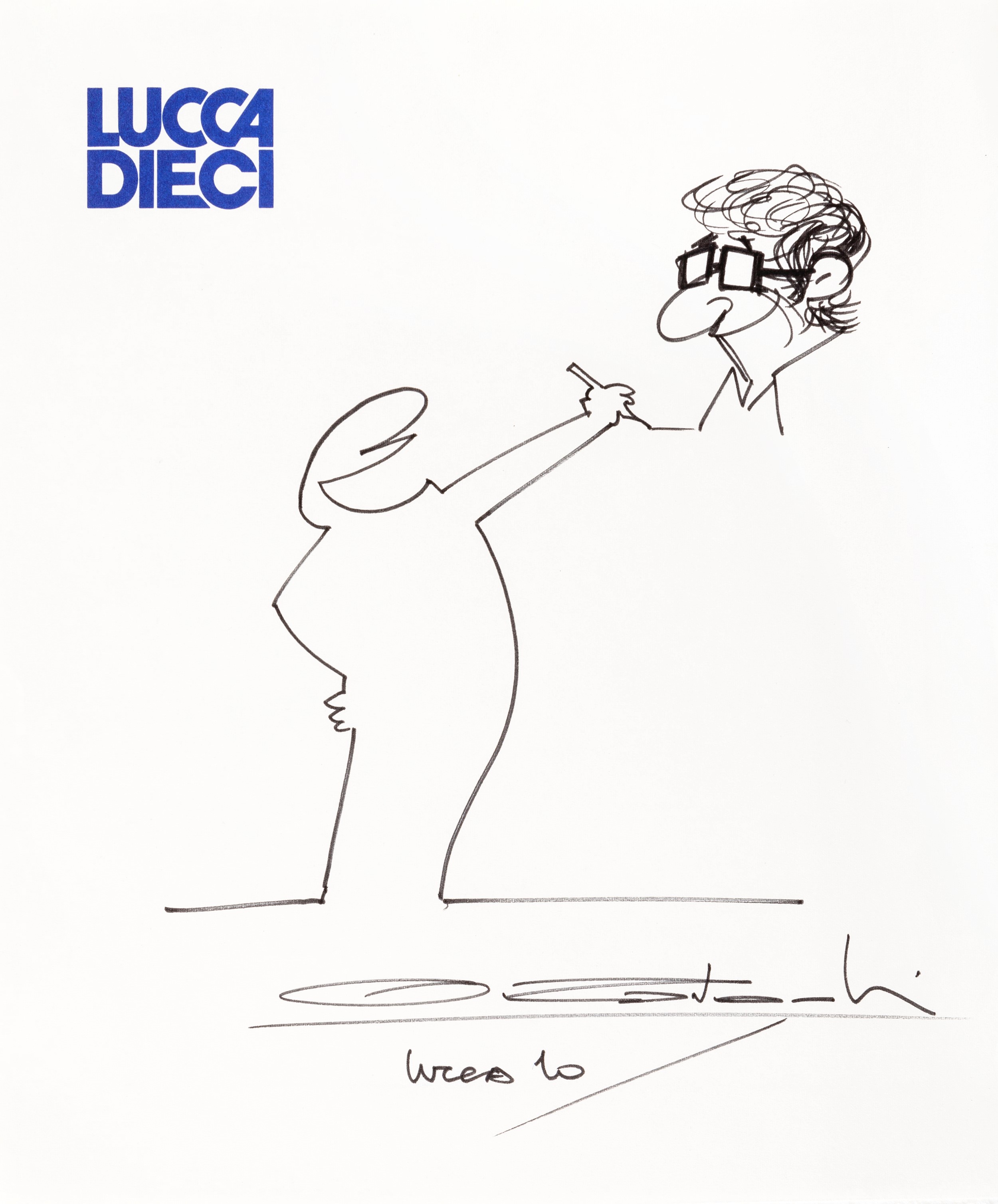 1974 Autoritratto originale realizzato da Cavandoli in occasione dell'edizione di Lucca Comics del 1974. Proveniente dalla collezione di Saverio Bruschini (tra i fondatori della manifestazione). Firmato e datato.