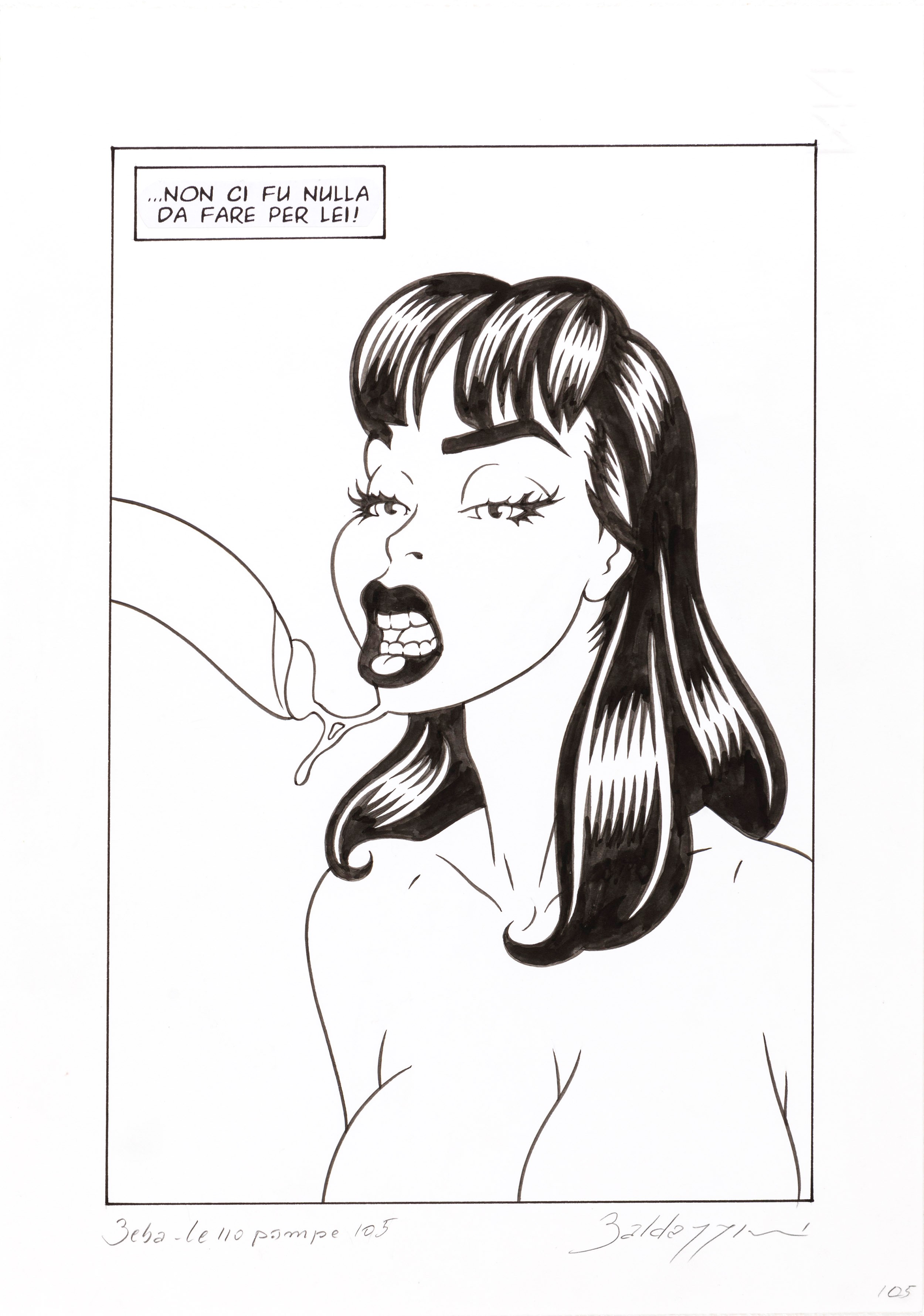 2006 Tavola originale realizzata da Baldazzini per Beba: Le 110 pompe, edita a pag. 105 dalla Kappa Edizioni nel 2006. Firmata e titolata.