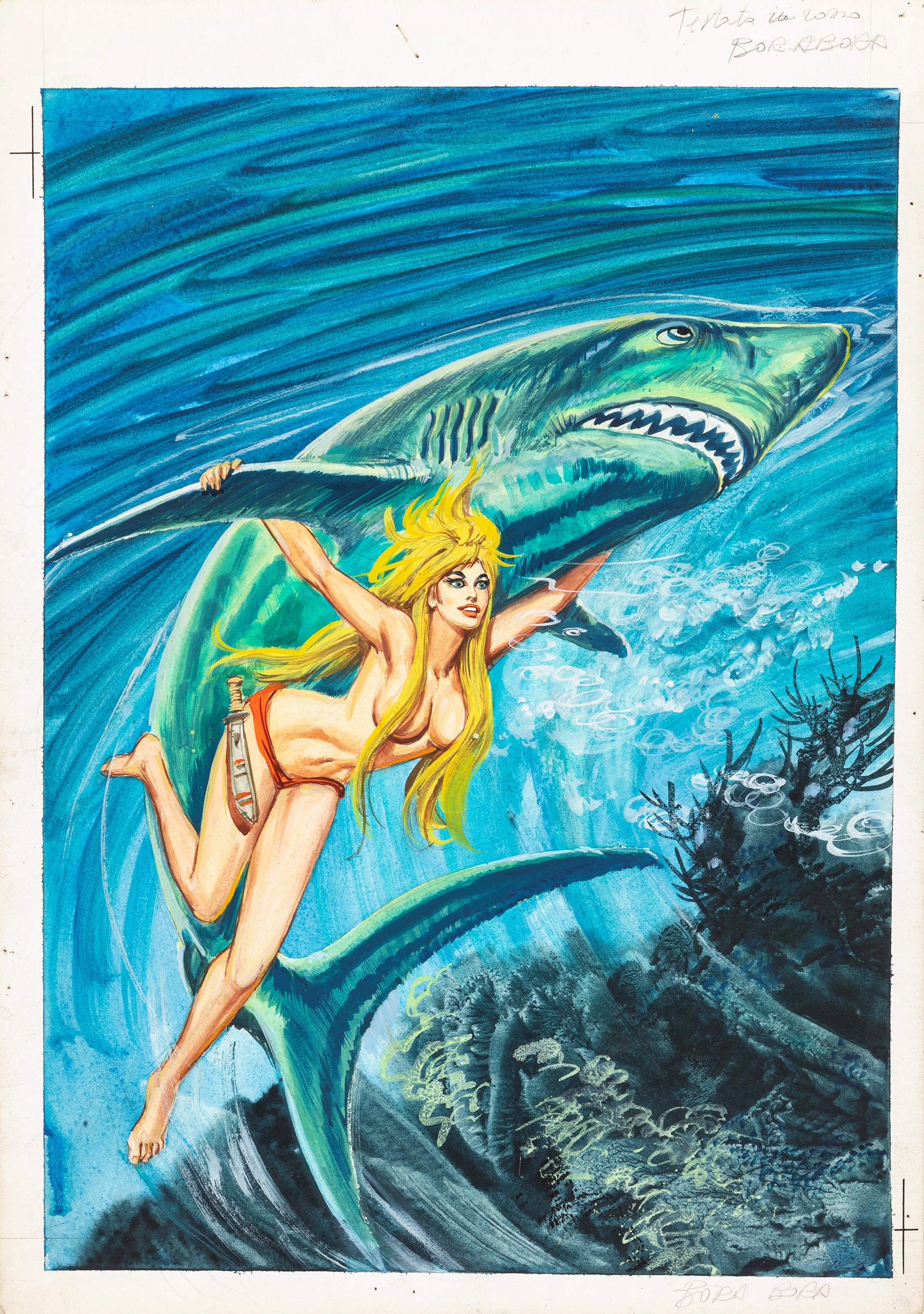 1970 Originale di copertina realizzato da Bozzi per Il sindacato all'attacco, edito su Bora Bora n. 2 dalla S.I.E. nel 1970. Fori di affissione ai margini.