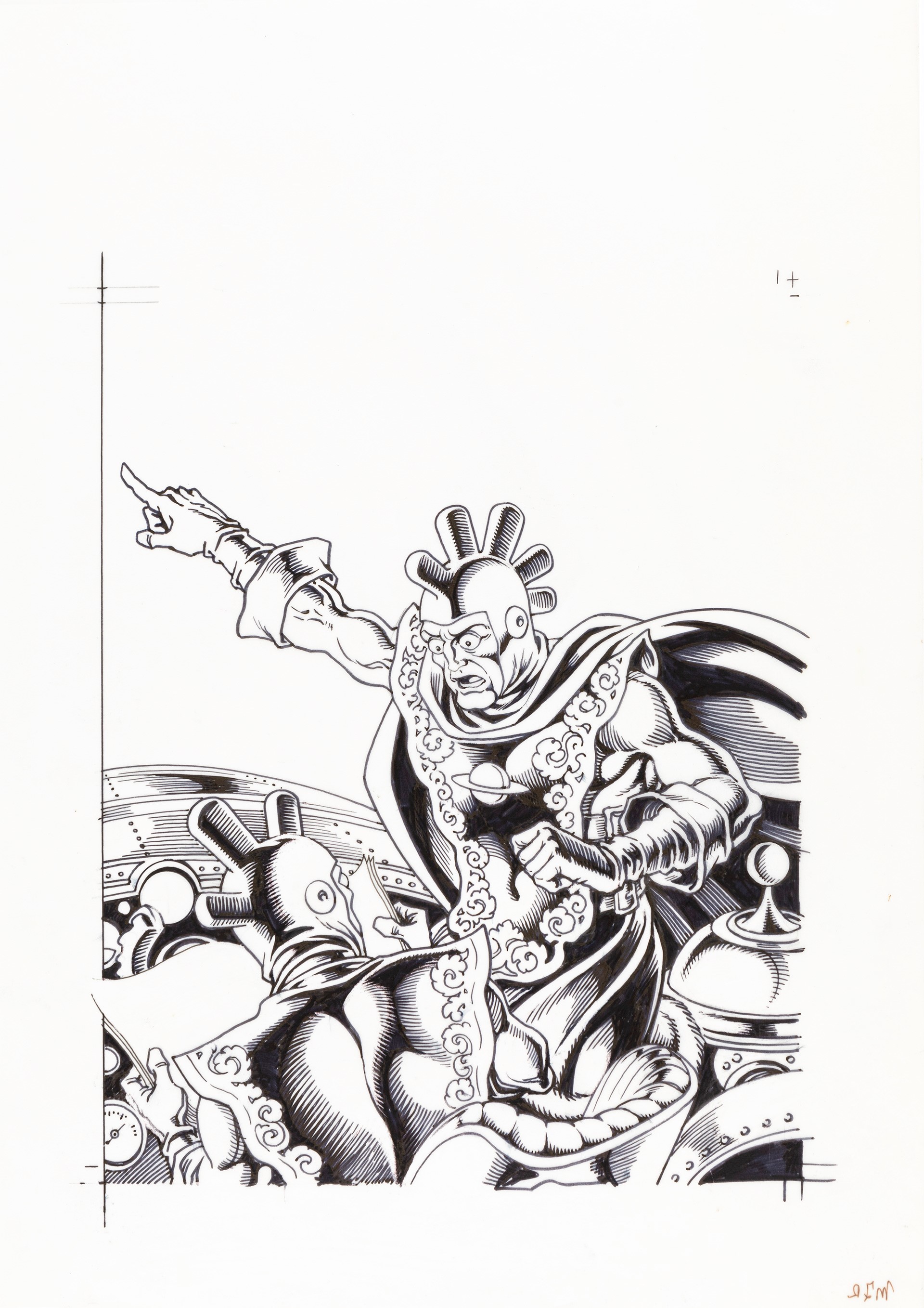 china e pennarello su lucido, 29,5 x 42 cm 1991 Originale di copertina realizzato da Magnus per la rivista Comic Art n. 77 pubblicata dall´omonima casa editrice nel Marzo 1991. Il maestro bolognese realizzò in tutto tre copertine per questa storica rivista utilizzando un processo di realizzazione già utilizzato in precedenza per la pubblicazione di opere a colori, eseguendo il disegno al tratto su lucido per poi utilizzare un processo di riproduzione eliografico (cianografia)che permetteva al maestro di intervenire successivamente sul semilavorato con l’aggiunta della colorazione definitiva. Opera pubblicata sul volume 21 a pag. 34 della collana Il grande Magnus nel 2020.