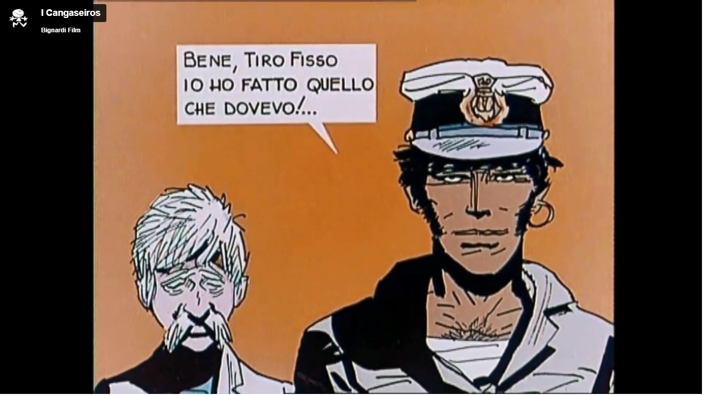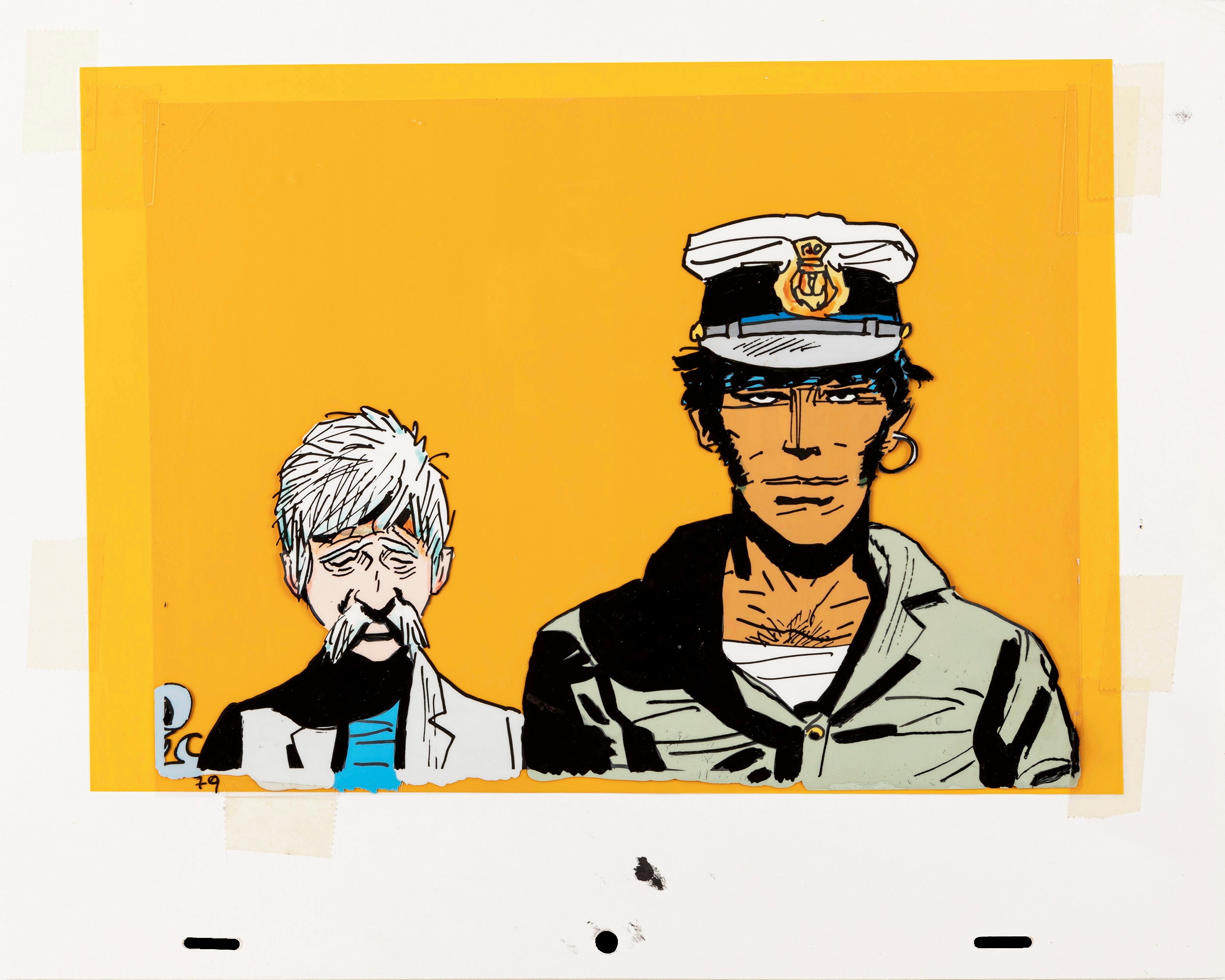 tempera su rodovetro, 32 x 27 cm 1972 Cel originale (due fogli) realizzata dallo Studio Bignardi per il frame n. 79 de I Cangaceiros, primo episodio della serie su Corto Maltese che sancisce la collaborazione di Pratt con lo studio di animazione modenese, episodio trasmesso per la prima volta nella trasmissione SuperGulp! nel 1972.