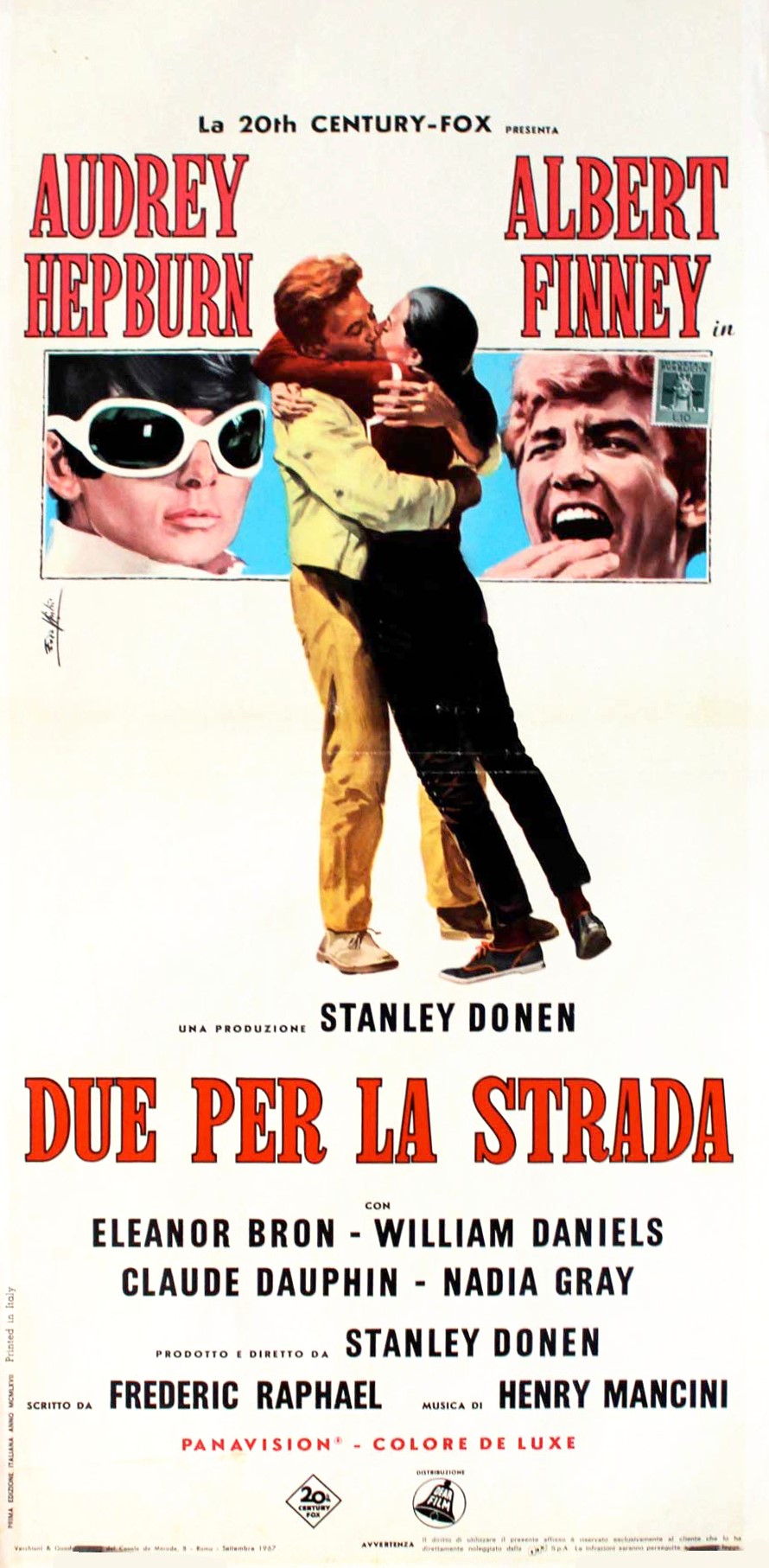 1967 Bozzetto originale realizzato da Enzo Nistri per la locandina ufficiale del film Due per la strada, diretto da Stanley Donen con Audrey Hepburn e Albert Finney nel 1967. Firmato.