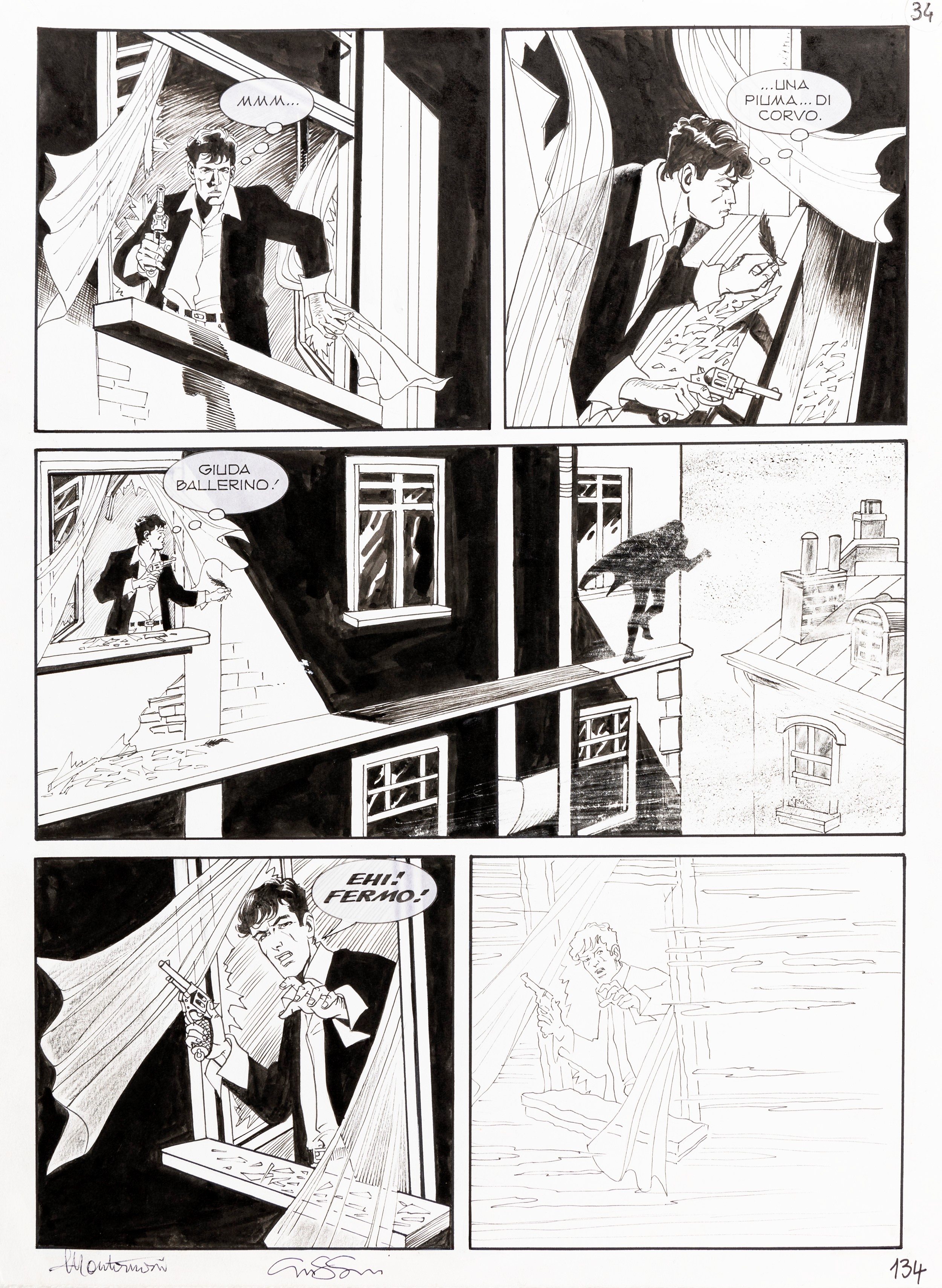 2009 Tavola originale realizzata da Montanari e Grassani per I sei corvi, edita sul Maxi Dylan Dog n. 12 a pag. 134 dalla Bonelli nel 2009. Firmata da entrambi gli autori.