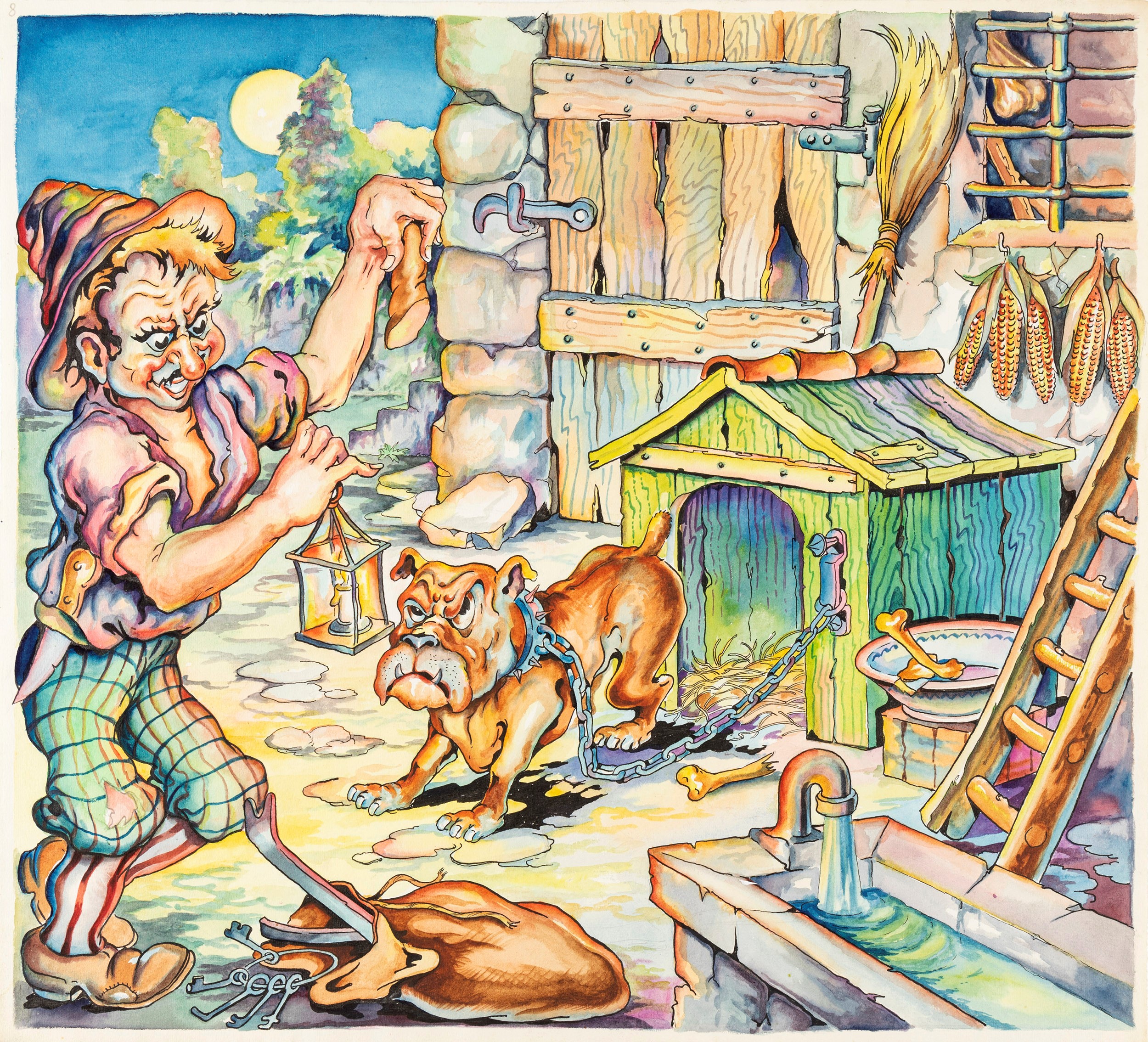 anni '50 Illustrazione originale realizzata da Lucchetti durante gli anni ´50 per Favole esopiane di Fedro, l´episodio si intitola Il cane fedele.