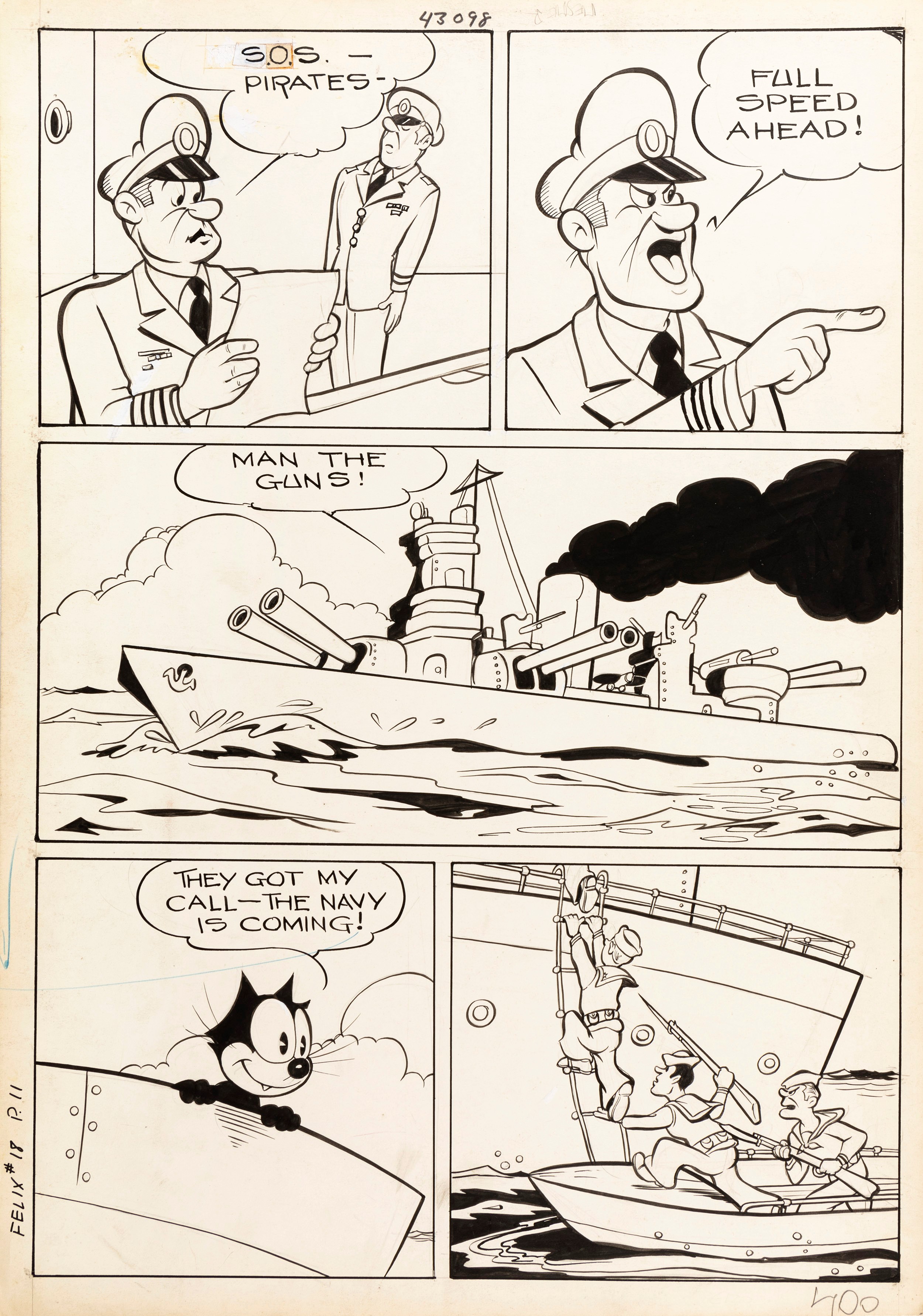 1951 Tavola originale realizzata da Messmer per Felix the Cat n. 16 edita a pag. 11 dalla Dell Comics nel 1951. Piega all'angolo superiore sinistro.