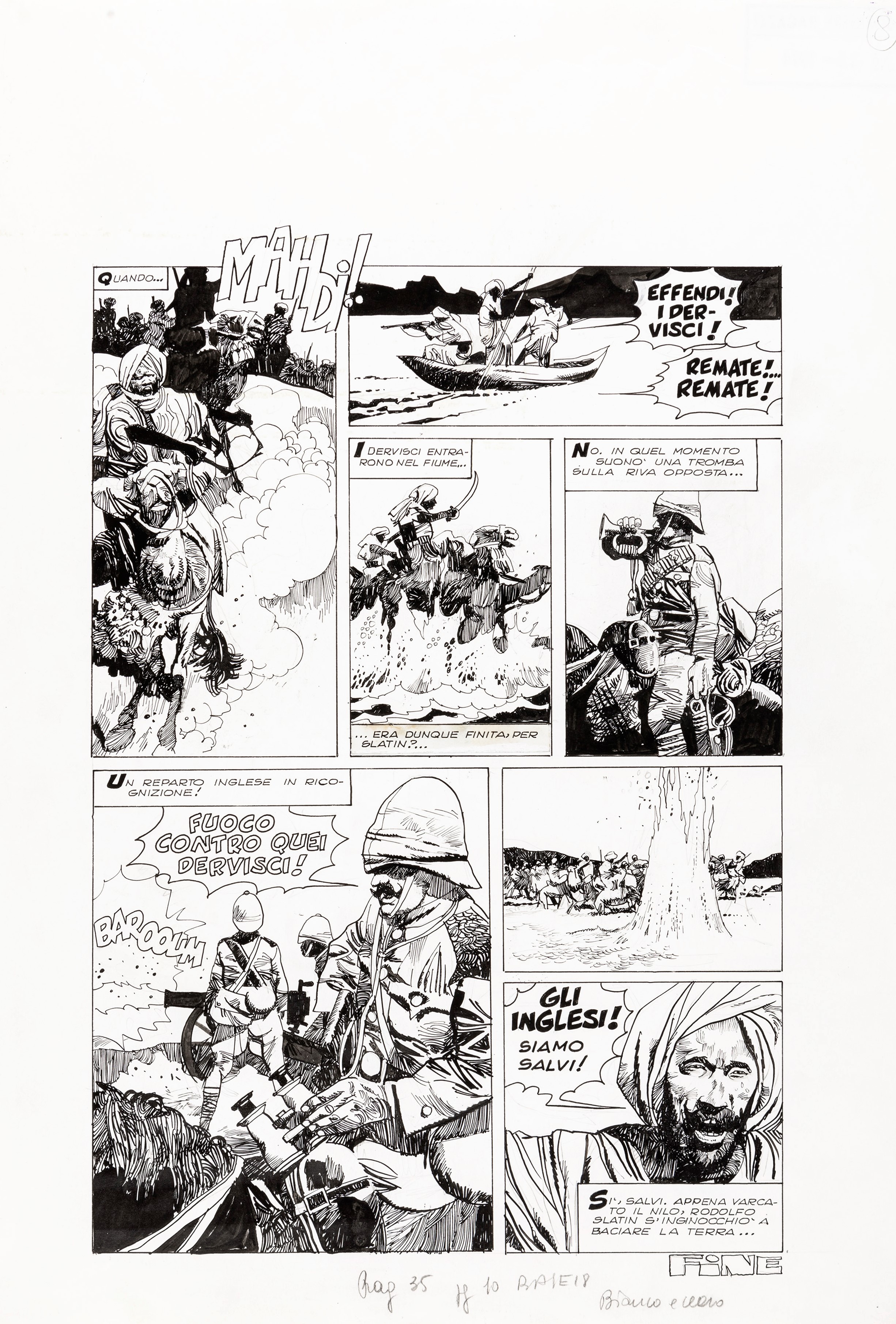 matita e china su cartoncino, 35 x 50,5 cm 1974 Tavola originale realizzata da Toppi per la pagina conclusiva de Fino al Nilo, storia pubblicata per la prima volta sul CdR n. 35 nel 1974 e successivamente sul volume Samurai e altre Storie dalla Fabbri editori nel 1980.