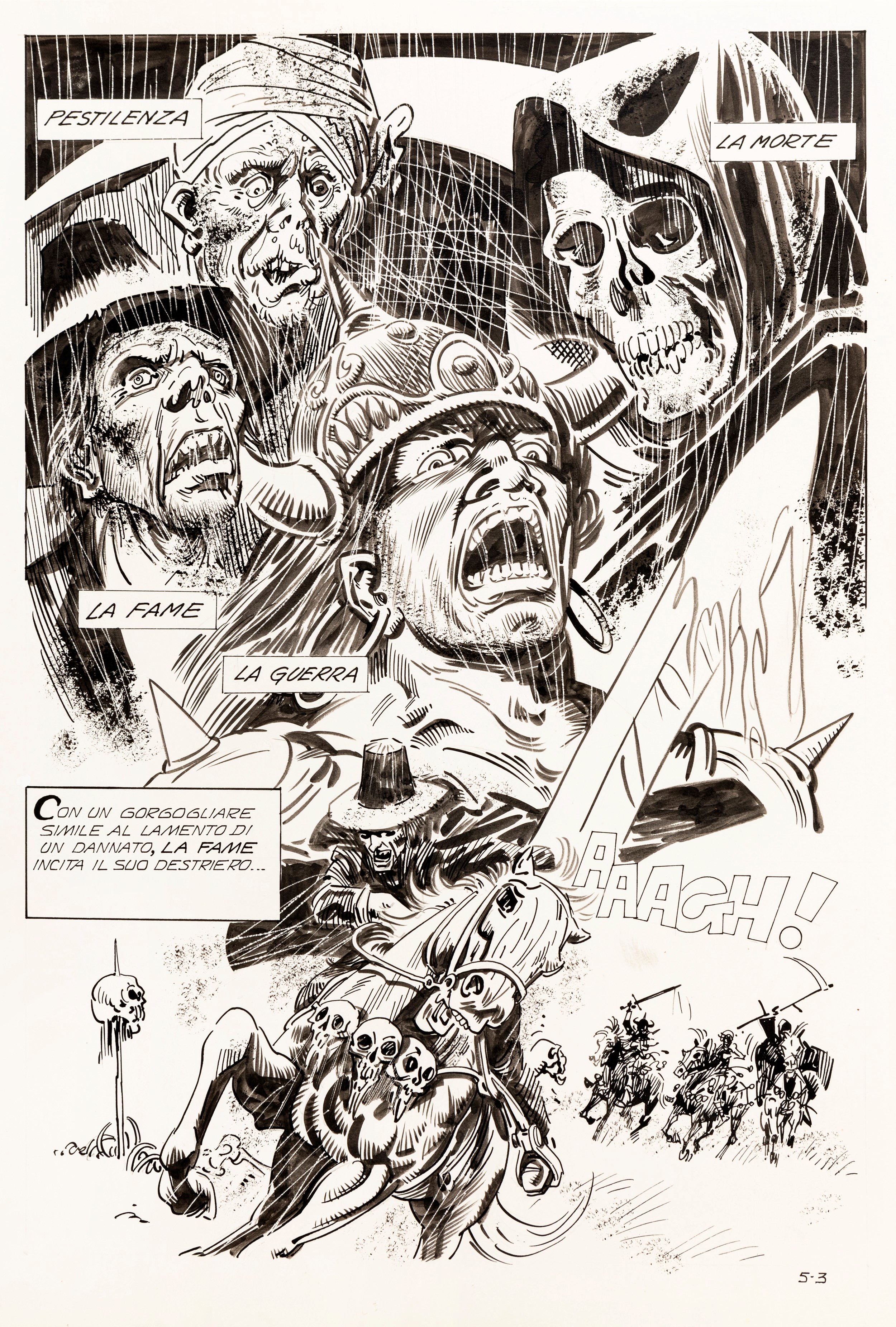 1979 Tavola originale realizzata da Missaglia per I Cavalieri dell´Apocalisse, edita nella collana Fumetti dell´Orrore n. 5 a pag. 3 dalla Edifumetto nel 1979.