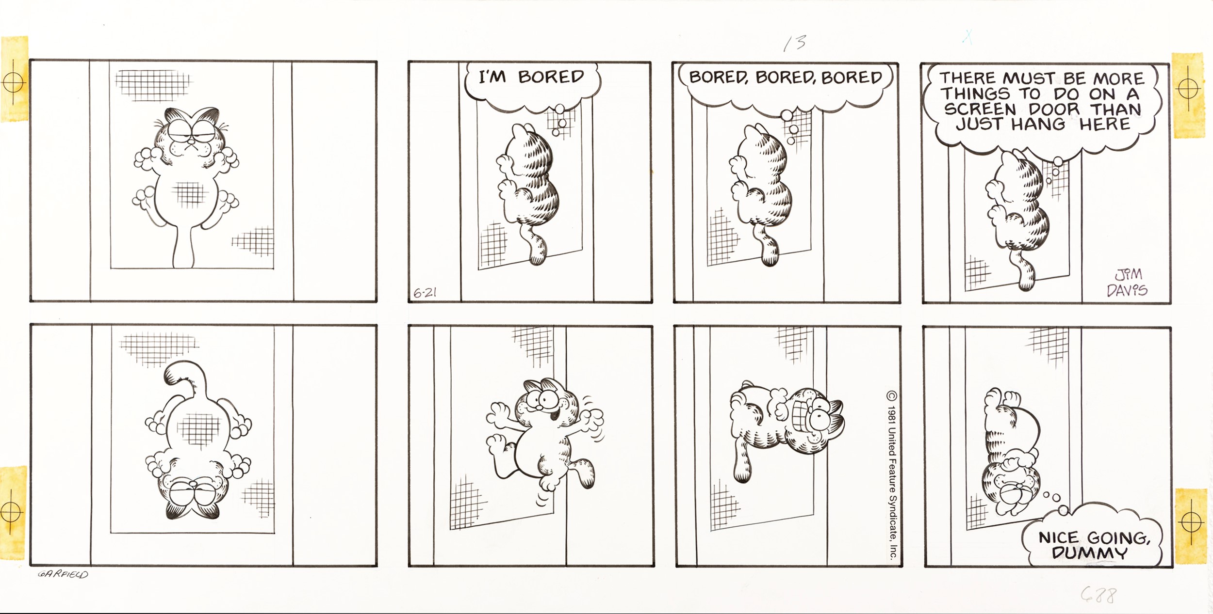 1981 Tavola domenicale del 21/06/1981 per Garfield. Firmata e datata.
