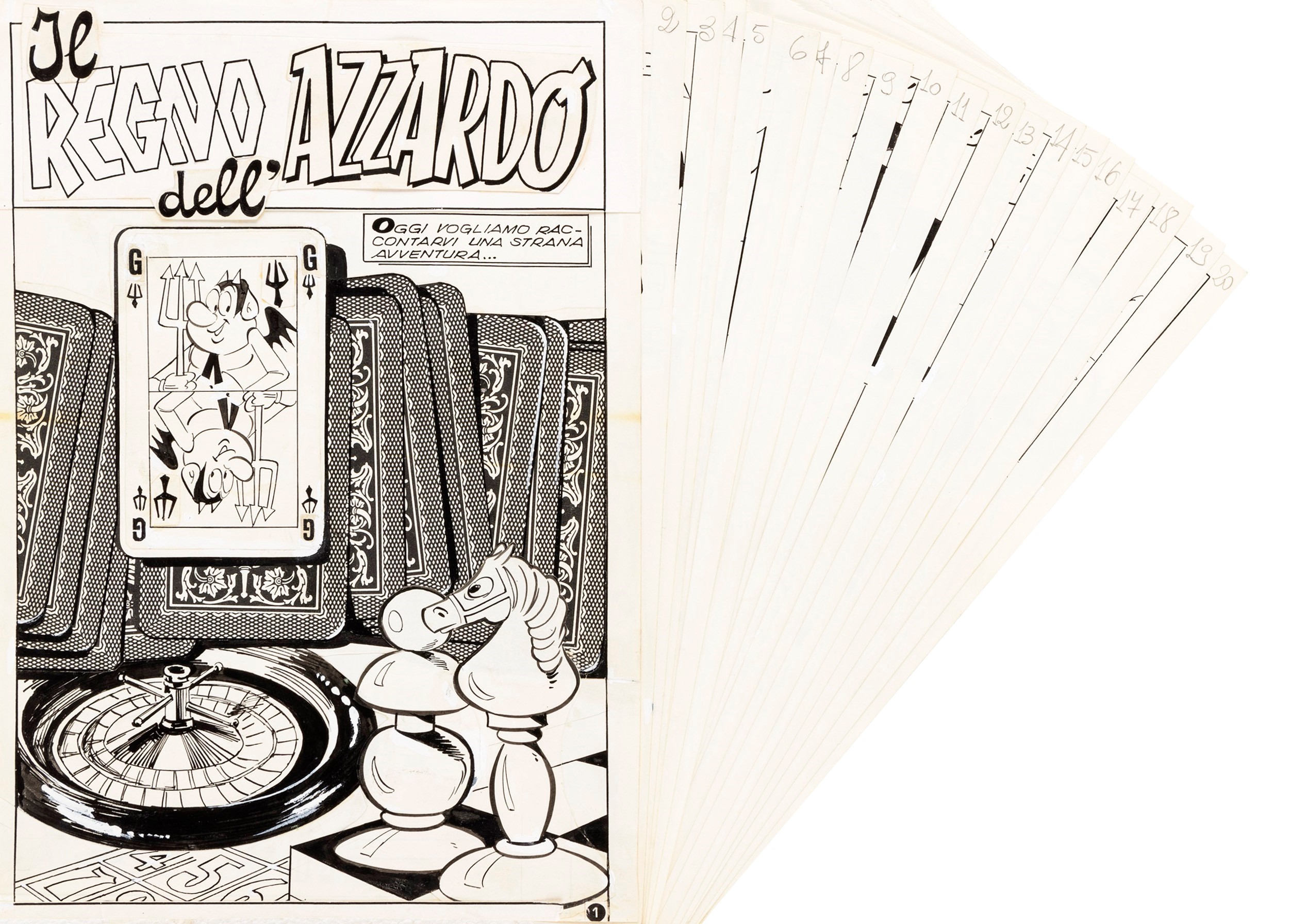 Storia completa composta da 20 tavole originali realizzate da Sangalli per Il regno dell'azzardo, avventura del buon diavolo Geppo pubblicata dalla Bianconi durante gli anni '60.