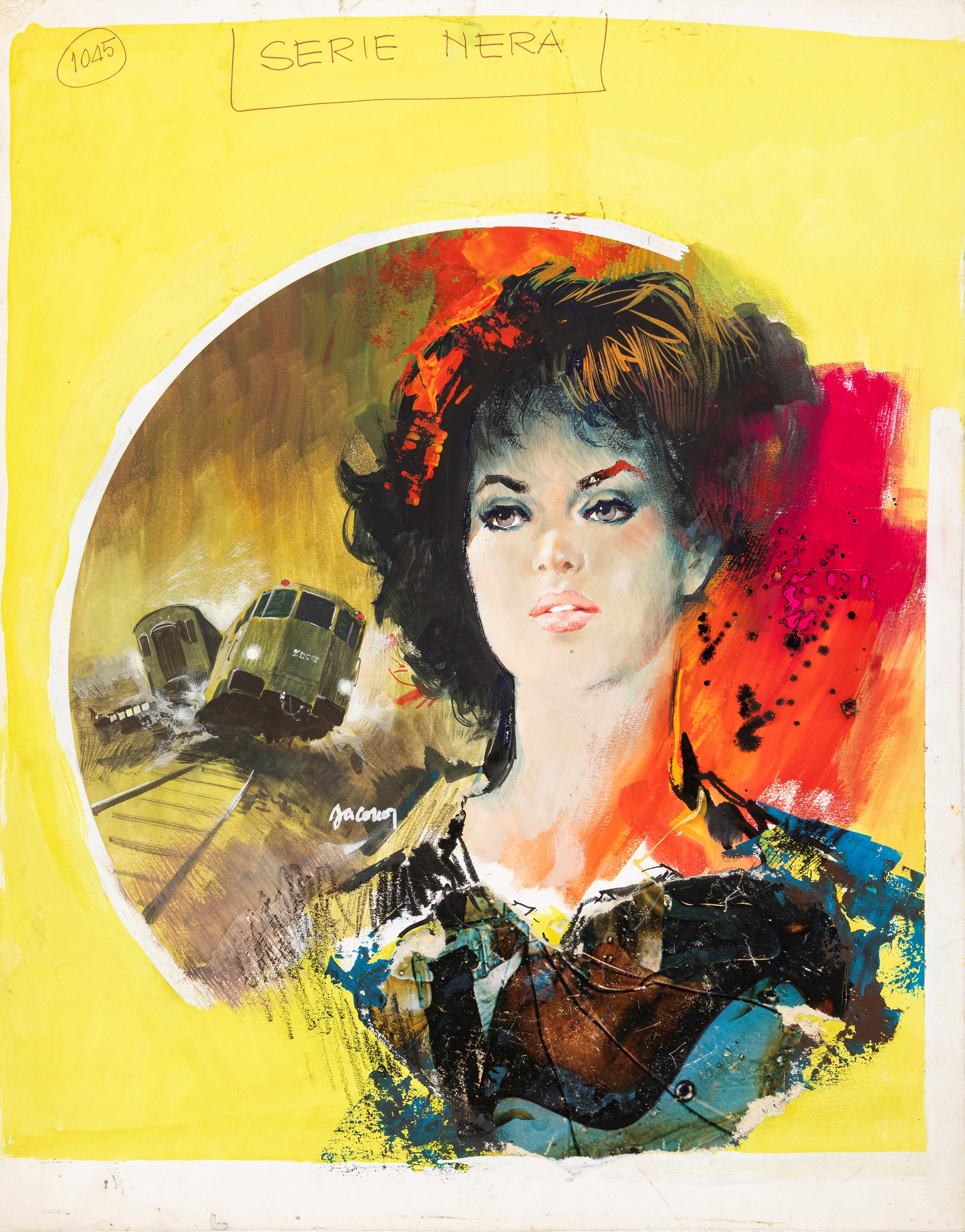 1969 Originale di copertina realizzato da Jacono per Requiem per una carogna di Rosemary Gatenby, edito nella collana Il Giallo Mondadori n. 1045 nel 1969. Firmato.