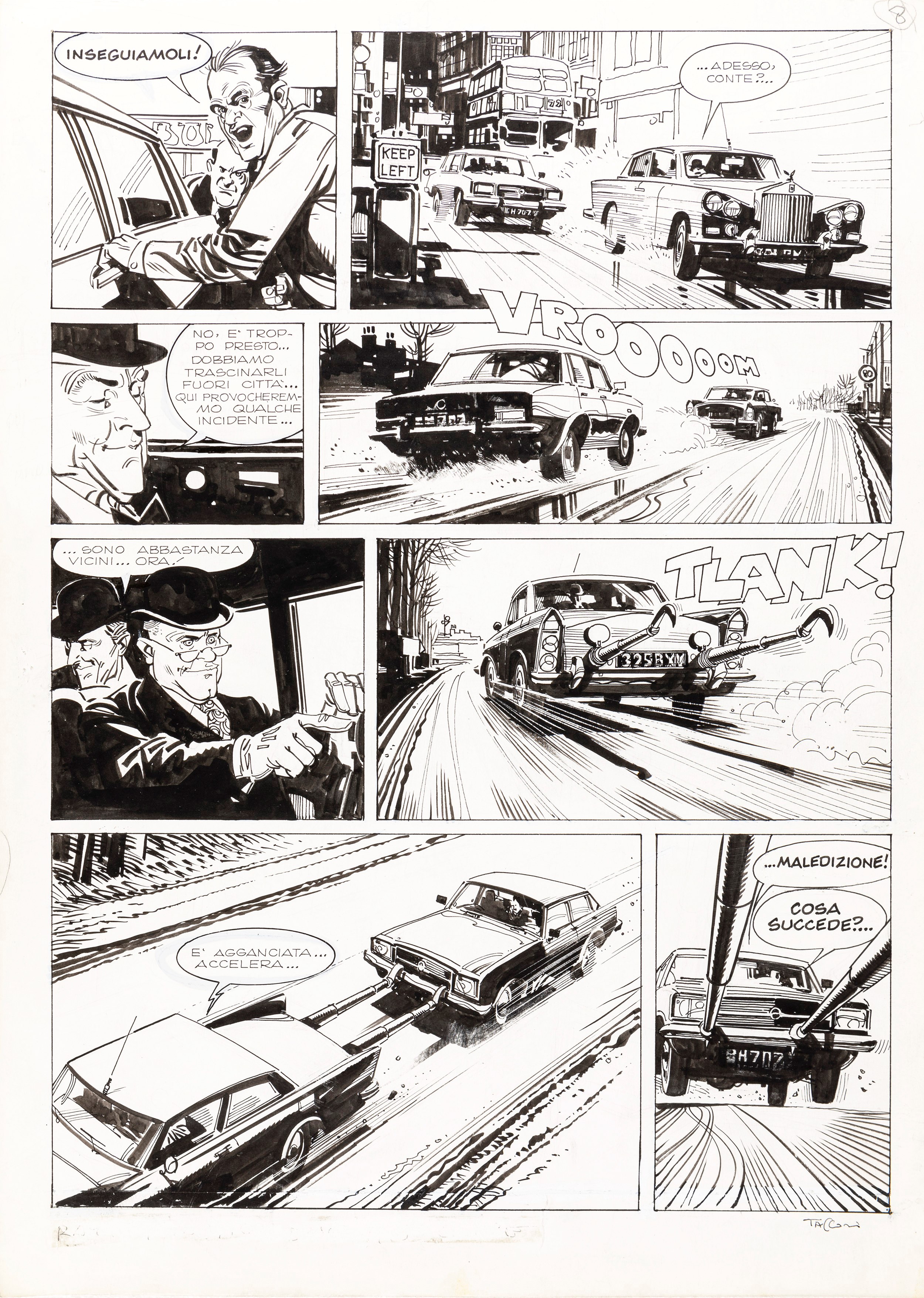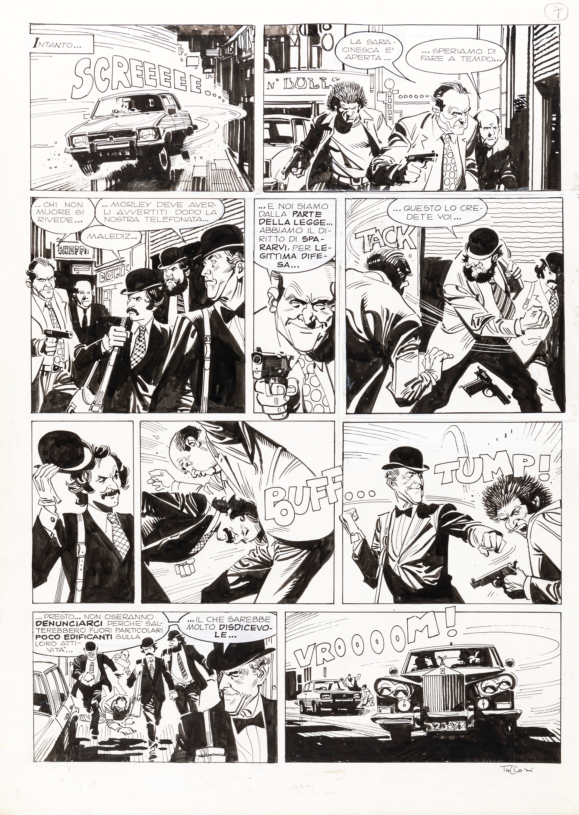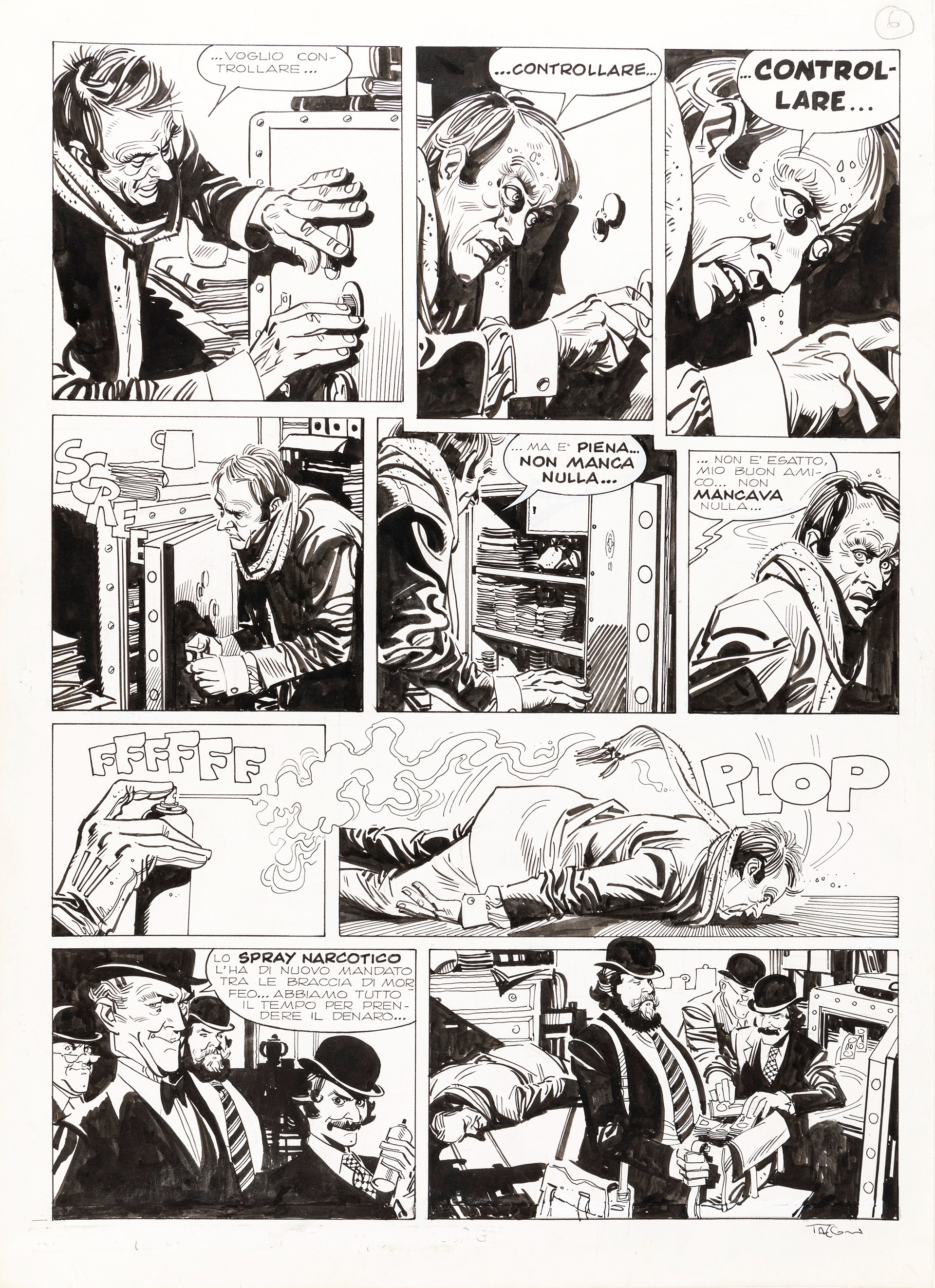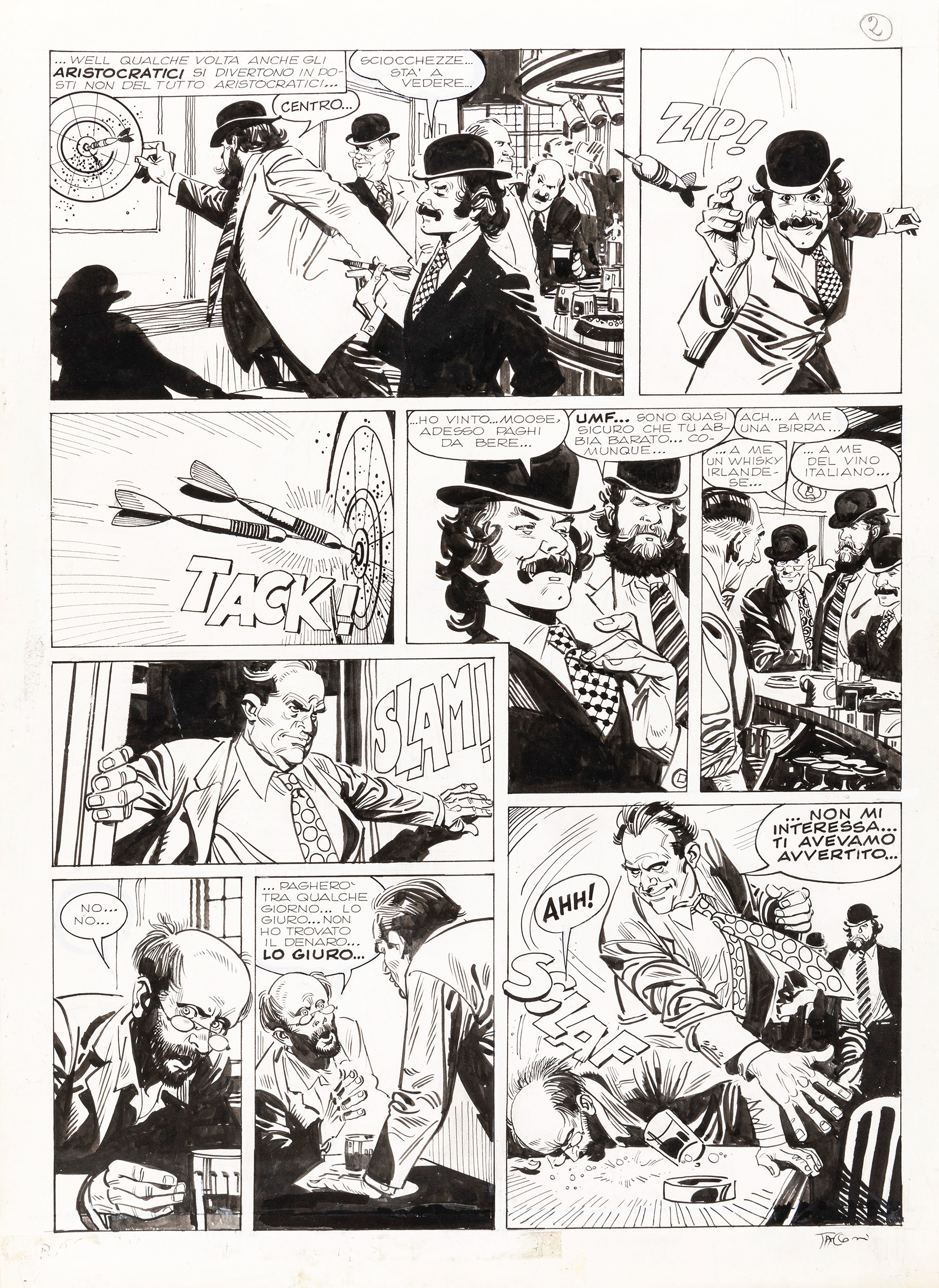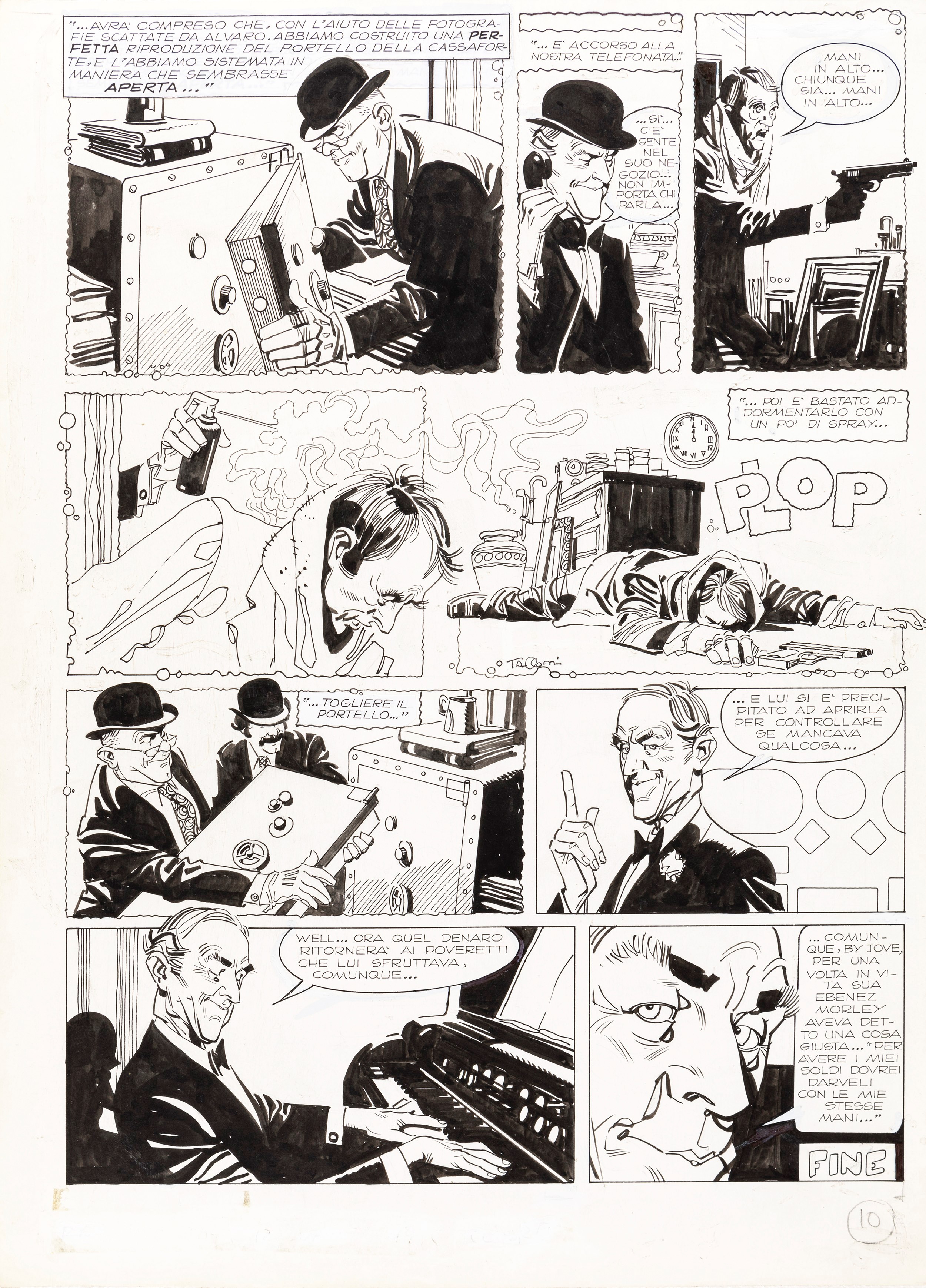 matita e china su cartoncino, 35,5 x 49 cm ciascuno 1973 Storia completa composta da 10 tavole originali realizzate da Tacconi per L'usuraio, avventura de Gli Aristocratici pubblicata per la prima volta sul CdR n. 29 del 1973. Alcune fotocopie nella pag. 4. Firmata in tutte le pagine.