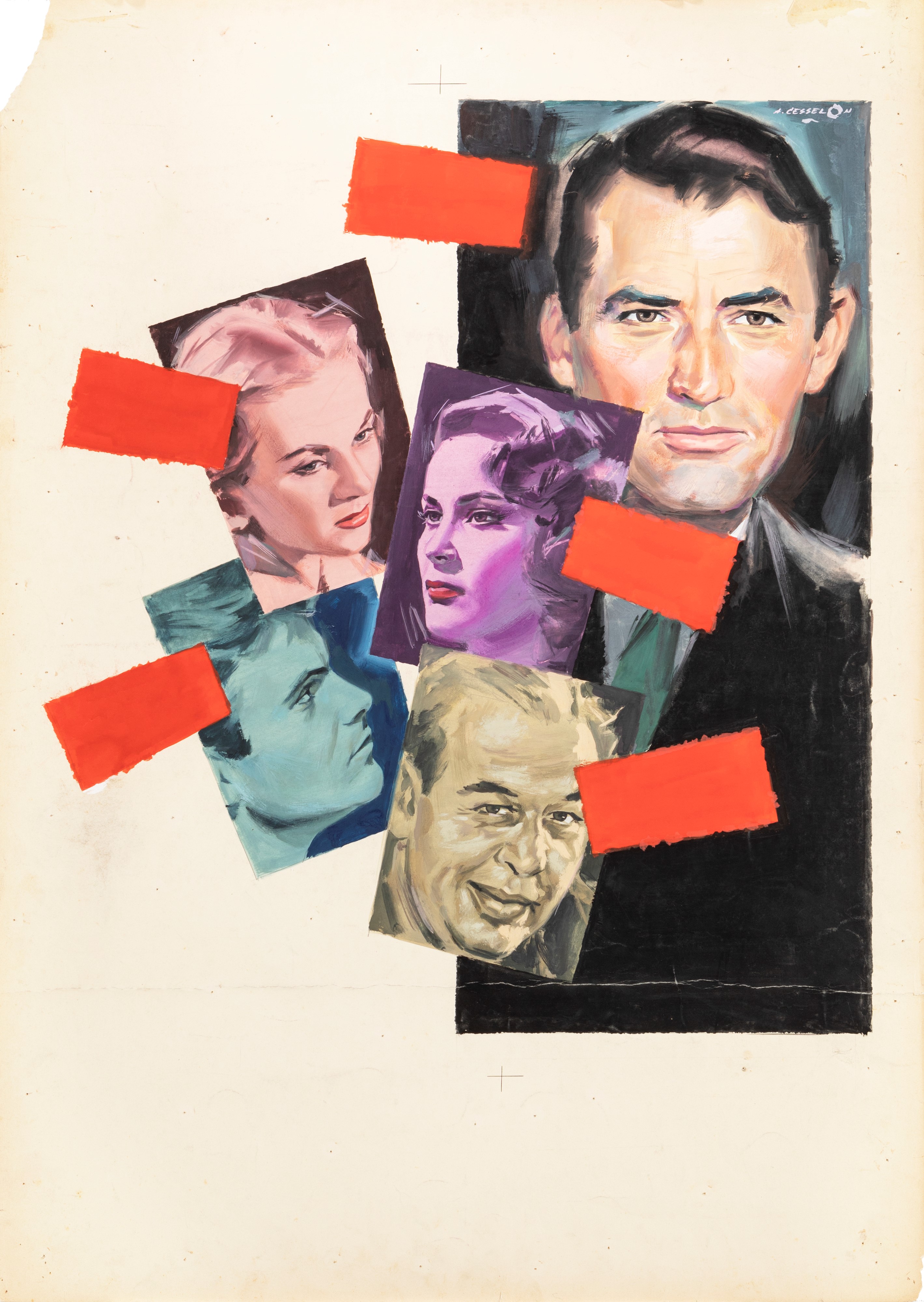 1947 Bozzetto originale realizzato da Cesselon per la locandina ufficiale del film Il caso Paradine, diretto da Alfred Hitchcock con Gregory Peck, Alida Valli e Ann Todd nel 1947. Firmato.
