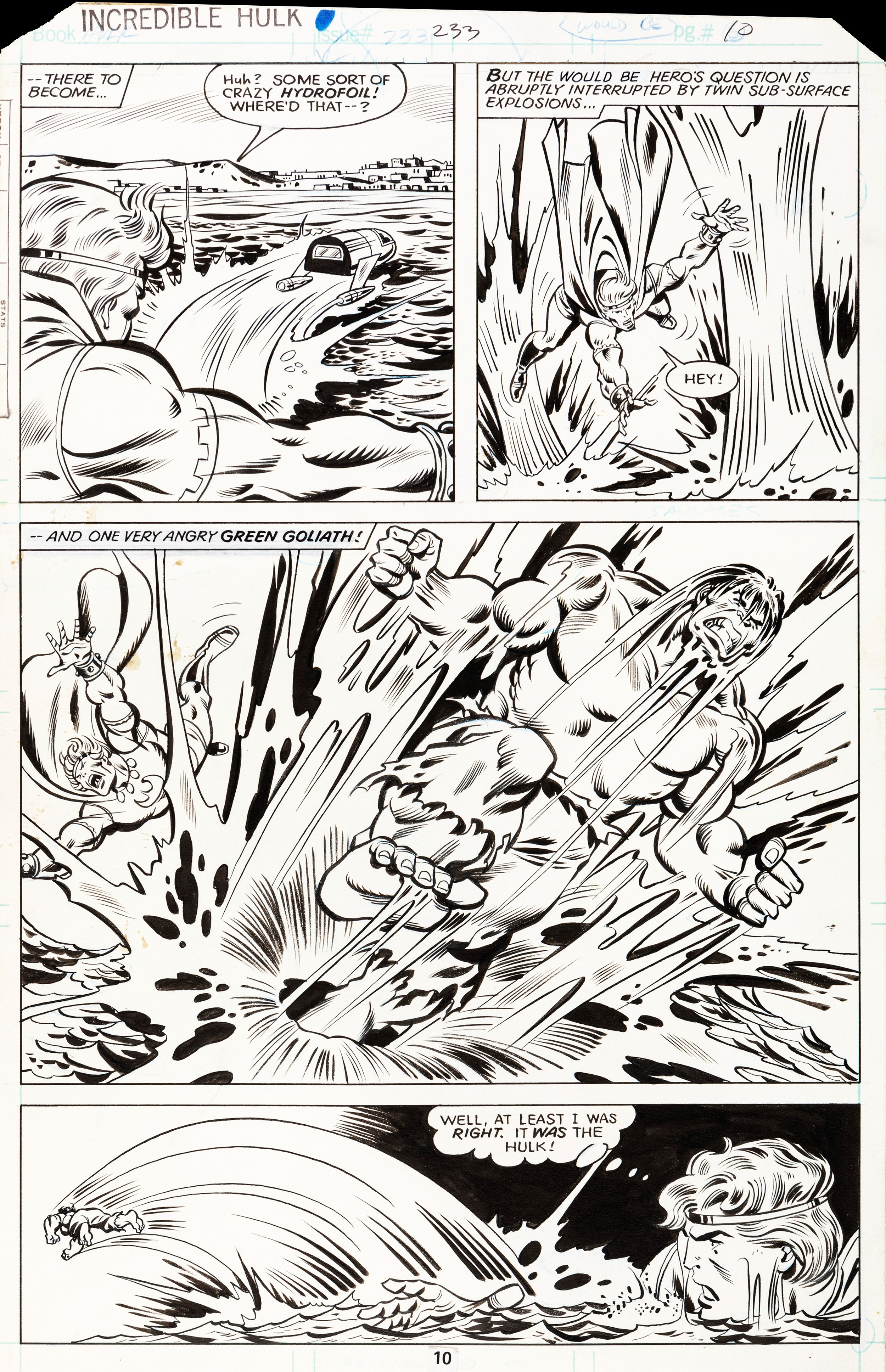 1979 Tavola originale realizzata da Buscema per ...At the Bottom of the Bay!, edita su Incredible Hulk n. 233 a pag. 10 dalla Marvel nel 1979.