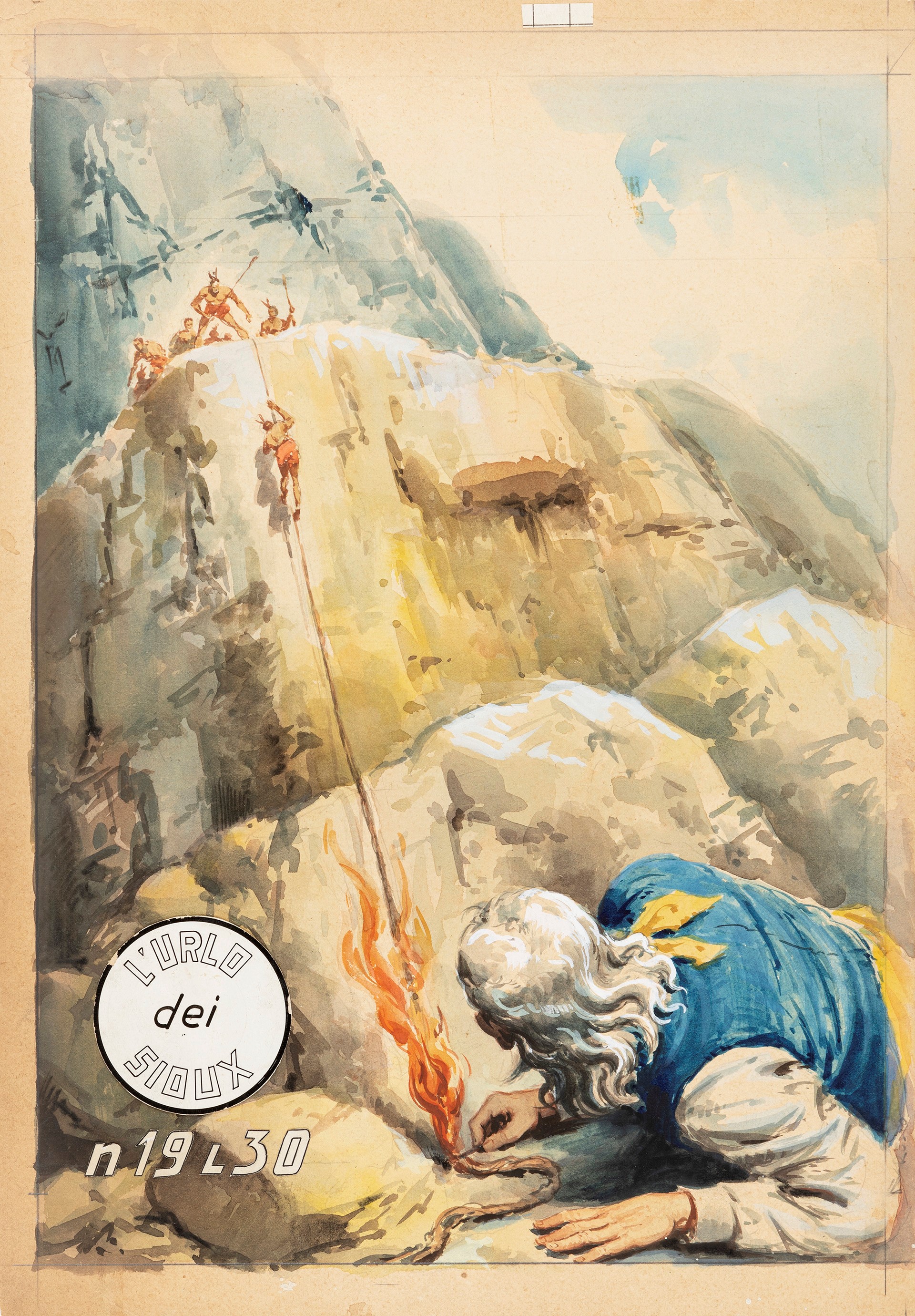 1955 Originale di copertina realizzato da Mairani per L'urlo dei Sioux, edito sull´Intrepido n. 19 dall´editrice Universo nel 1955. Lieve piega con frattura all'angolo superiore sinistro.