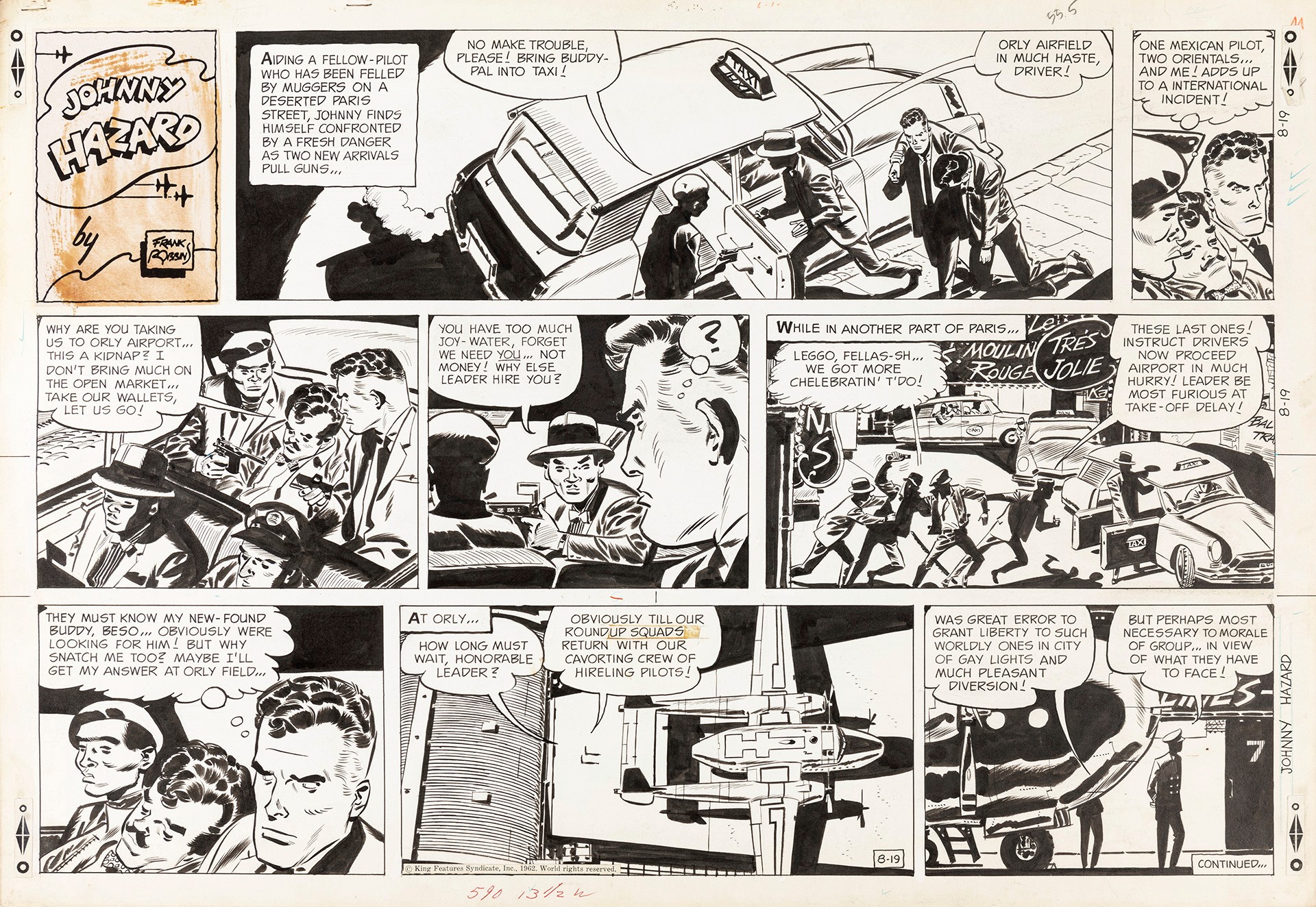 1962 Tavola domenicale del 19/08/1962 per Johnny Hazard. Fori di affissione al margine superiore.