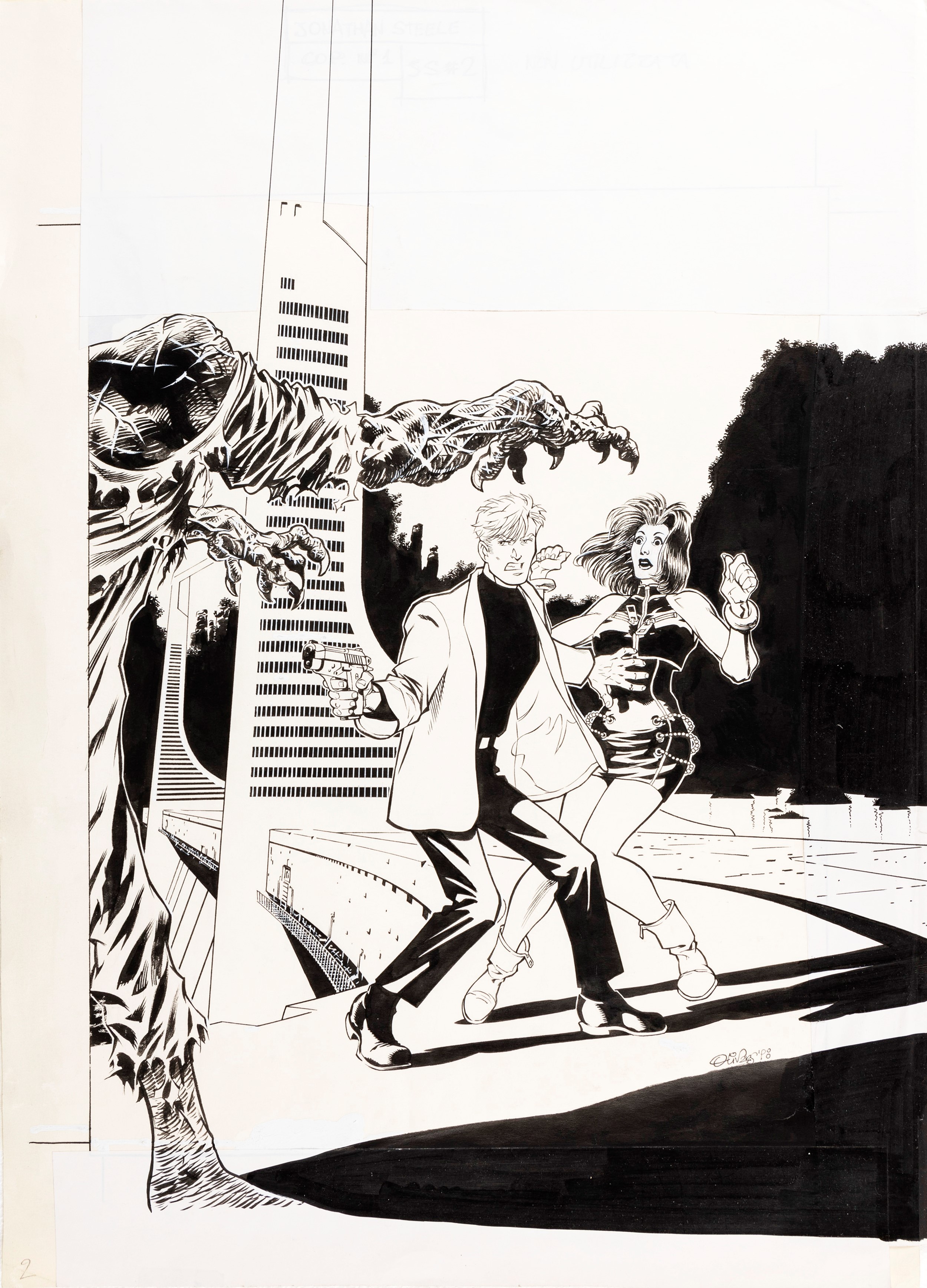 1999 Originale di copertina realizzato da Olivares per La diga di Wanxian, edito su Jonathan Steele n. 2 dalla Bonelli nel 1999. Lievi pieghe ai margini. Firmato e datato.