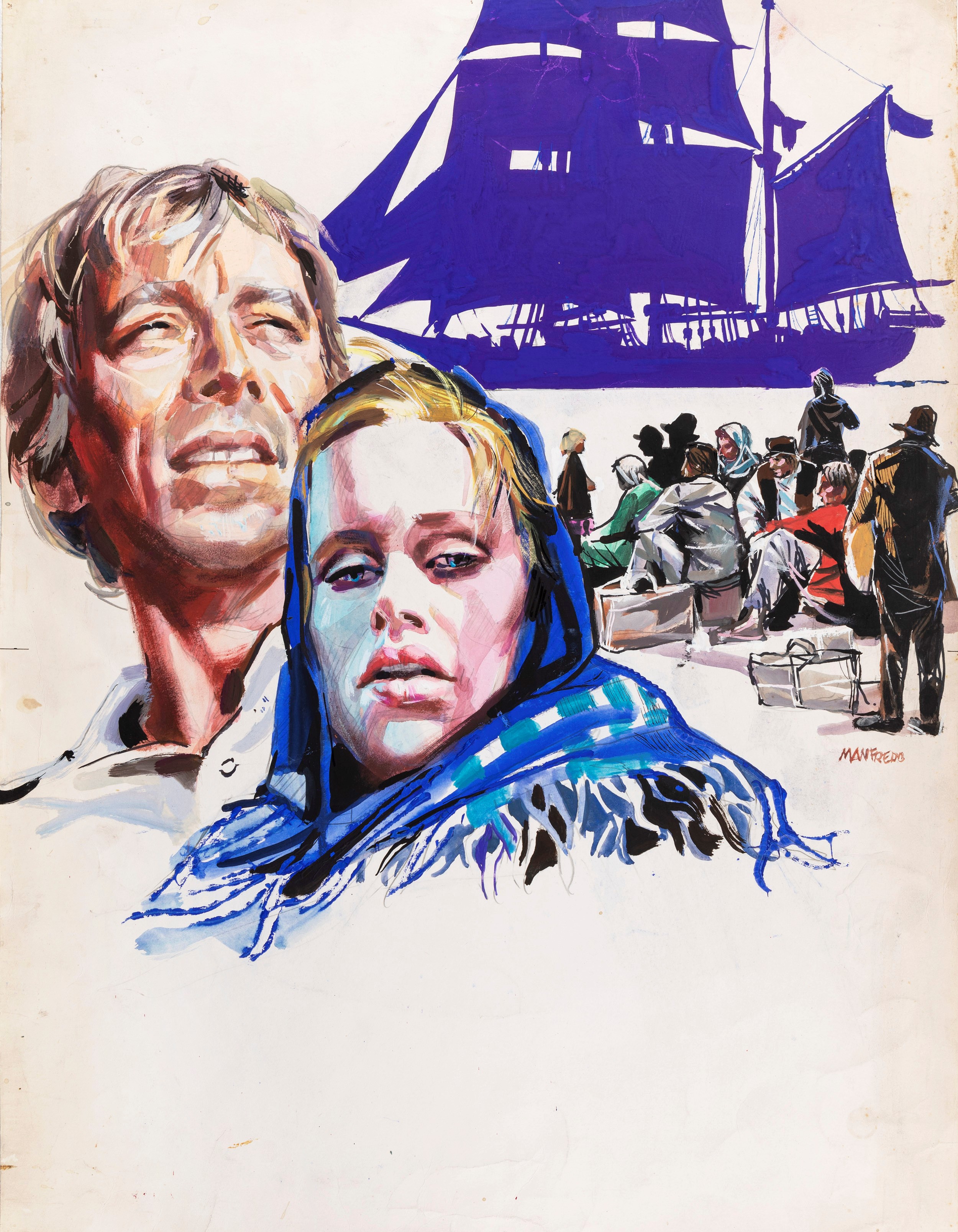 tempera su cartoncino, 50 x 65,5 cm 1971 Bozzetto originale realizzato da Ciriello per la locandina ufficiale del film Karl e Kristina, diretto da Vilhelm Moberg con Max von Sydow, Liv Ullmann e Eddie Axberg nel 1971. Lievi pieghe ai margini. Firmato.