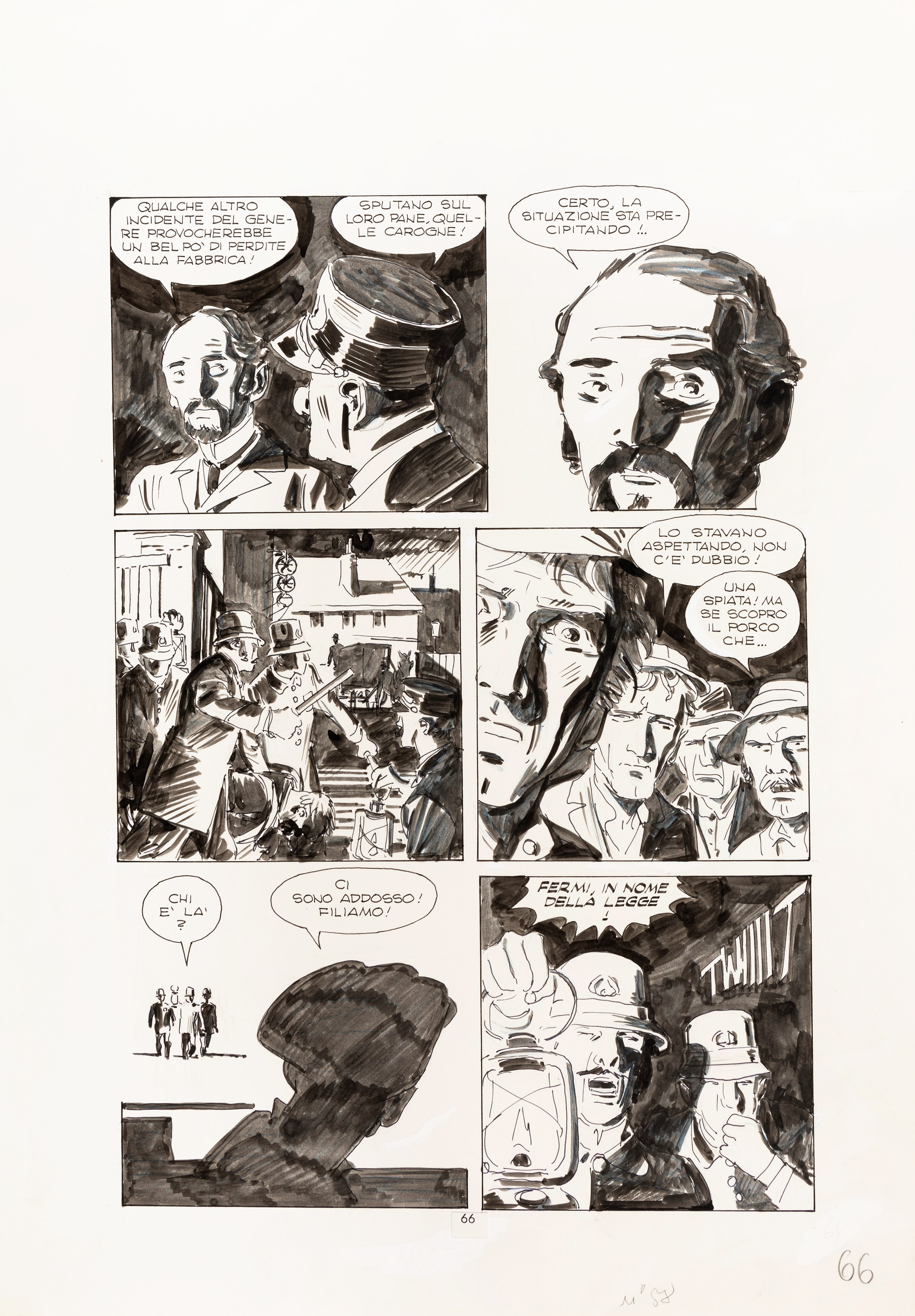 1984 Tavola originale realizzata da Milazzo per Sciopero, edita su Ken Parker n. 58 a pag. 66 dalla Bonelli nel 1984.