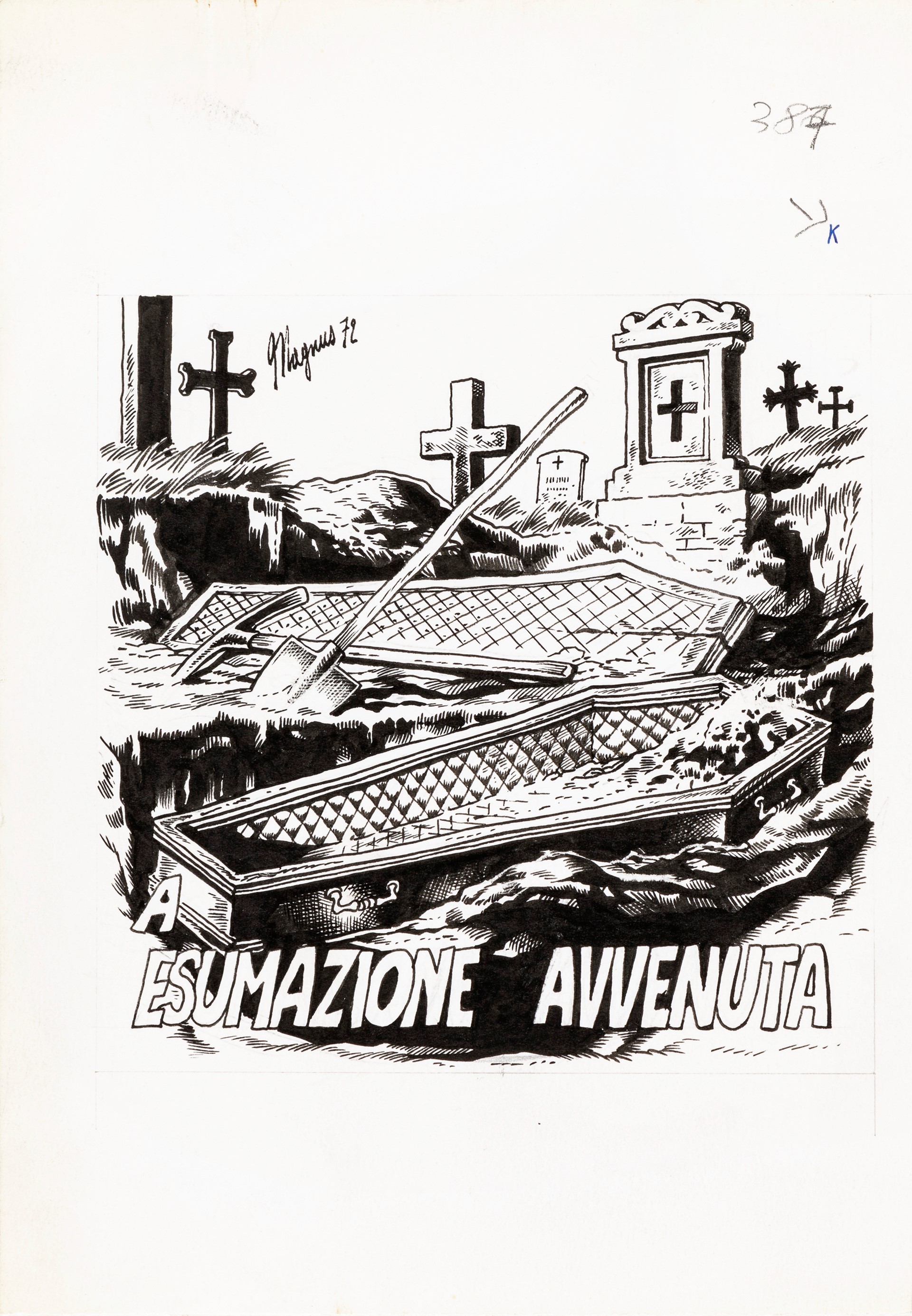 1972 Originale di copertina realizzato da Magnus per A esumazione avvenuta, edito su Kriminal n. 387 dalla Corno nel 1972. Firmato e datato.