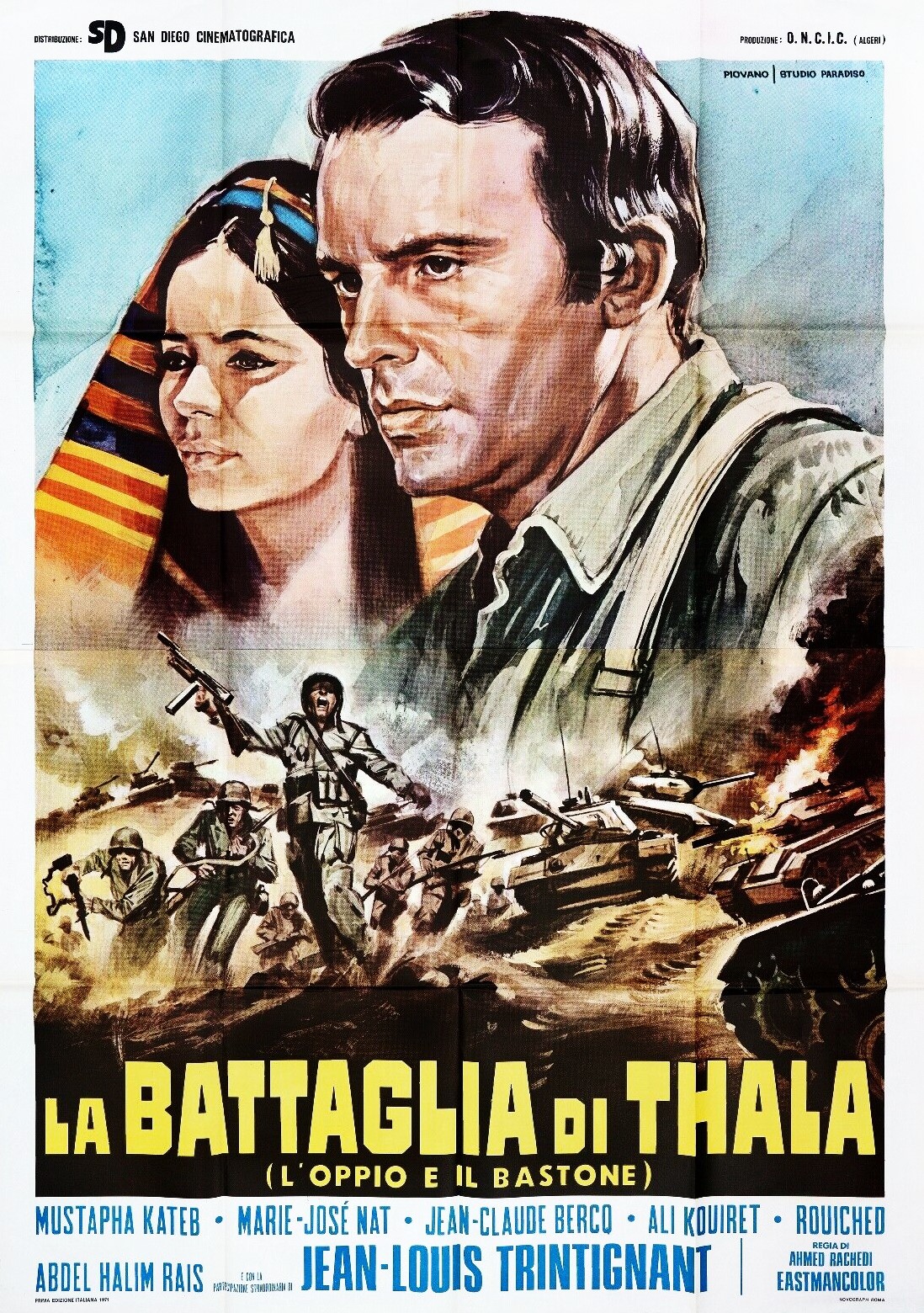 1969 Bozzetto originale realizzato da Piovano per la locandina ufficiale del film La battaglia di Thala diretto da Ahmed Rachedi con Jean-Louis Trintignant e Marie-José Nat nel 1969. Firmato.