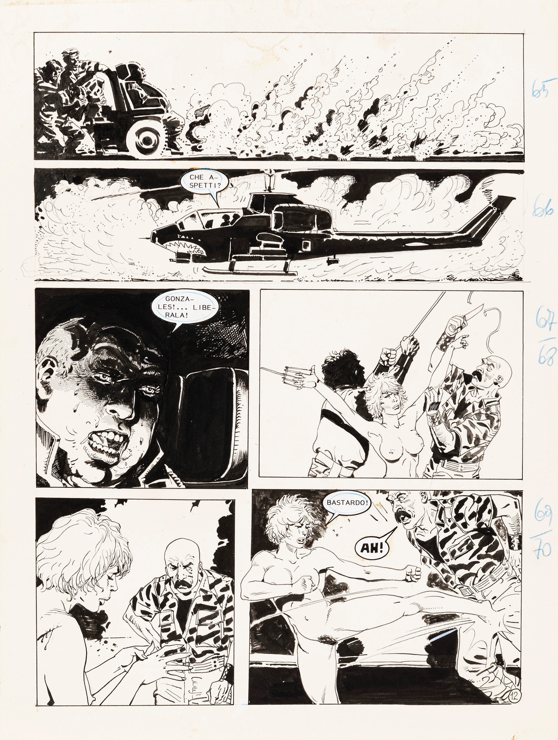 1986 Tavola originale realizzata da Duran per La Selvaggia, page 12 di questa saga post-apocalittica dai risvolti erotici pubblicata per la prima volta in Italia su Skorpio nel 1986.