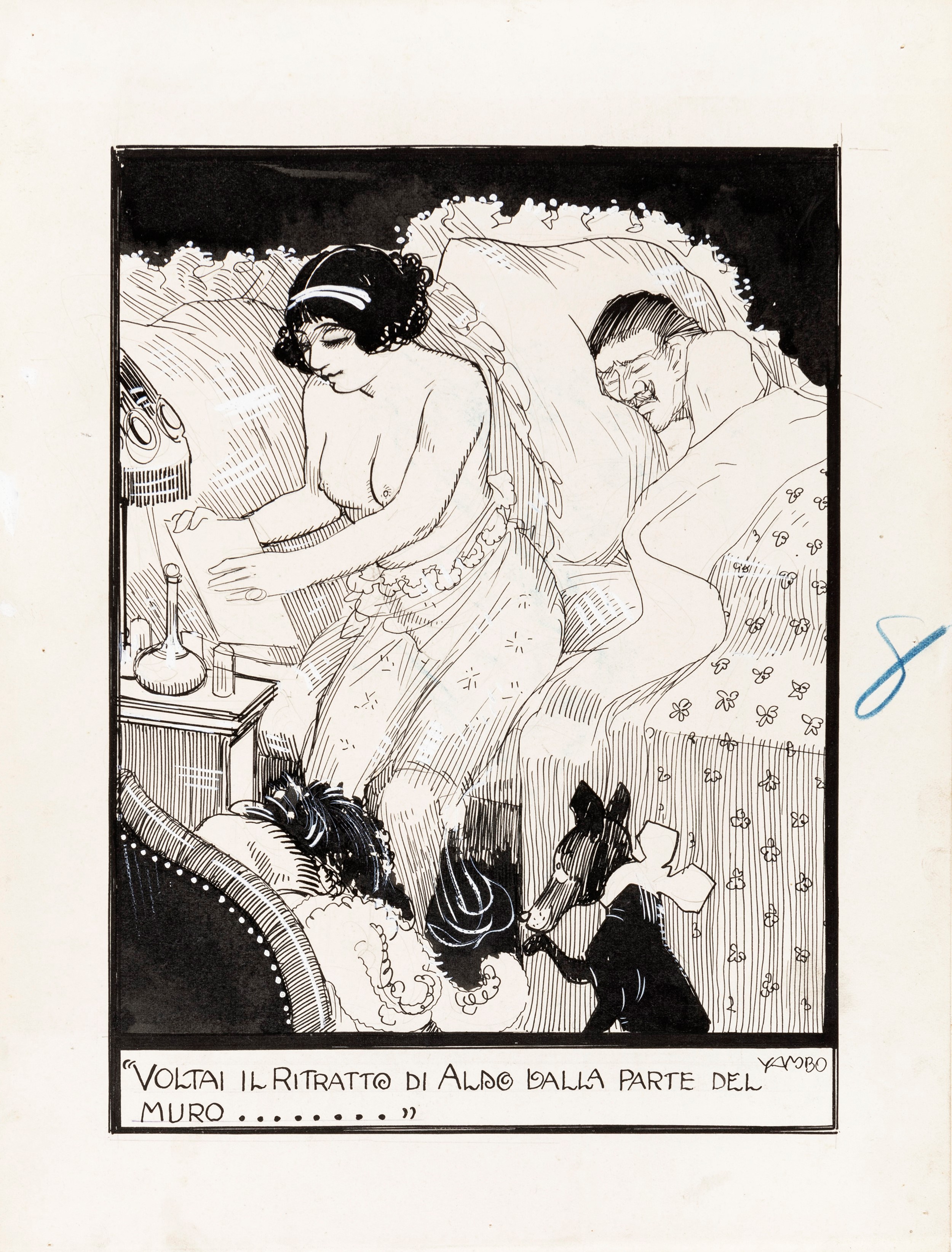 1920 Illustrazione originale realizzata da Yambo per un fascicolo de Le memorie di una Sciantosa, edito dalla Nerbini nel 1920. Firmata.