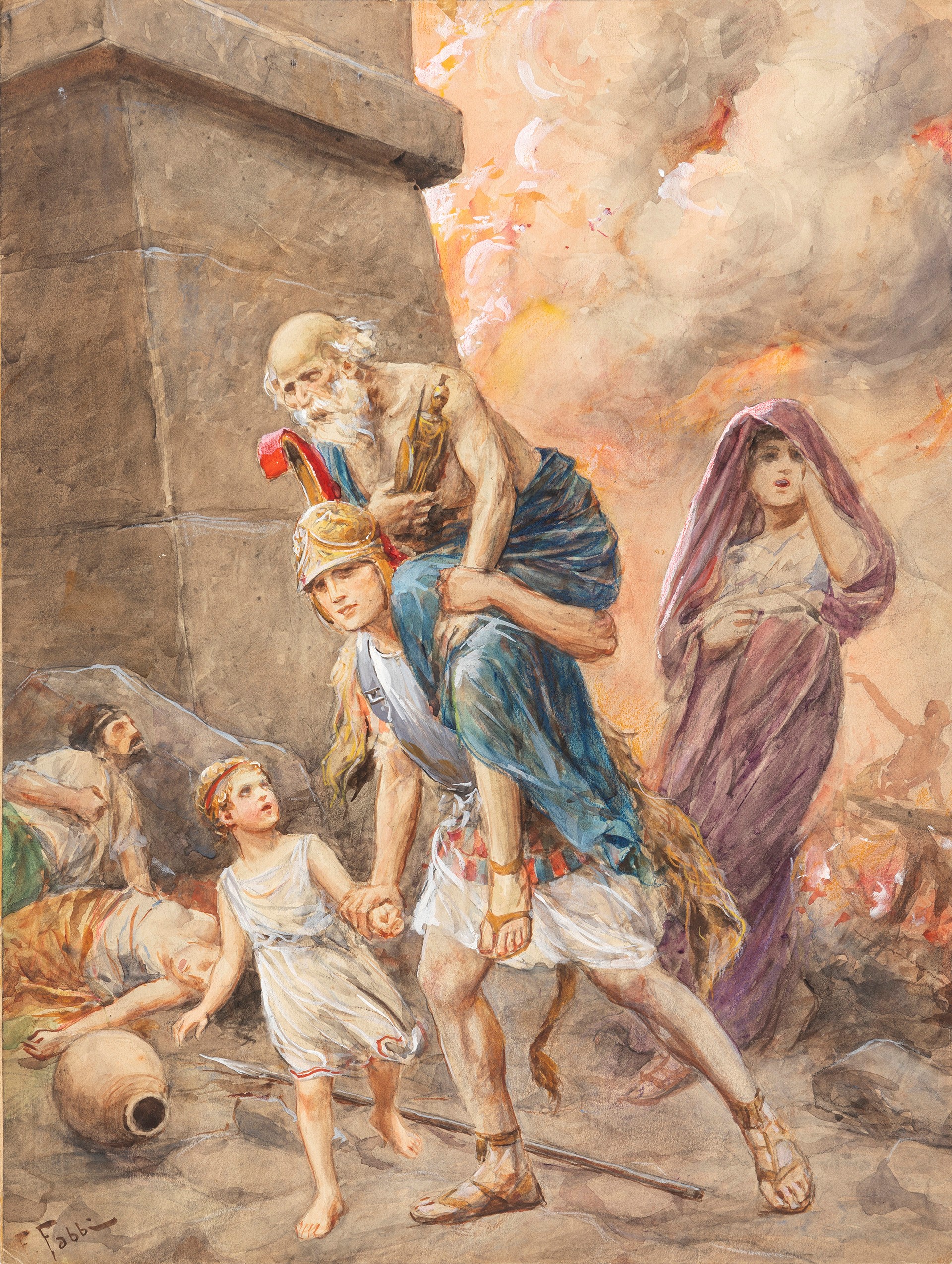matita, china, acquerello e tempera su cartoncino applicato a cartone, 30 x 40 cm 1930 Illustrazione originale realizzata da Fabbi per LŽIliade, pubblicata a pagina intera da Nerbini nel 1930. Pittore di fama internazionale Fabbi è considerato uno dei massimi esponenti della corrente orientalista. Firmata.
