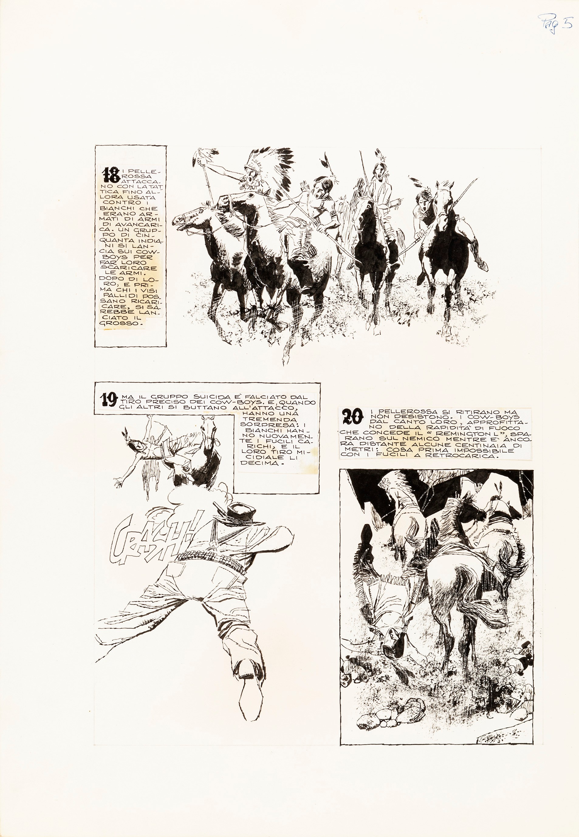 1968 Tavola originale realizzata da Battaglia per la pag. 5 della storia western L’impresa di Nelson Story, pubblicata per la prima volta in appendice a Dyno n. 2 da Mondadori nel 1968.
