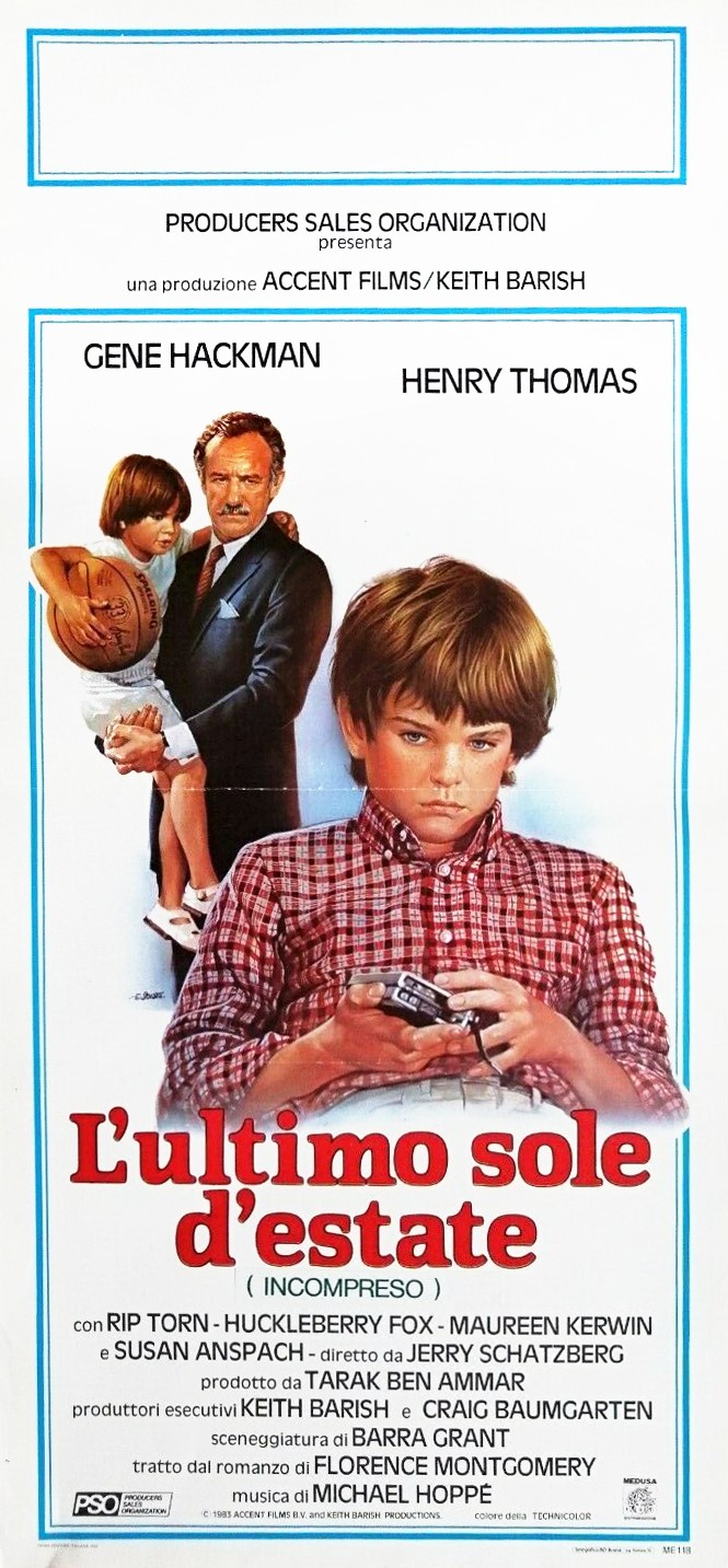 tempera su cartone, 40 x 39 cm 1984 Bozzetto originale realizzato da Sciotti per la locandina ufficiale del film L'ultimo sole d'estate, diretto da Jerry Schatzberg con Gene Hackman, Rip Torn e Henry Thomas nel 1984. Estese tracce di umidità. Firmato.