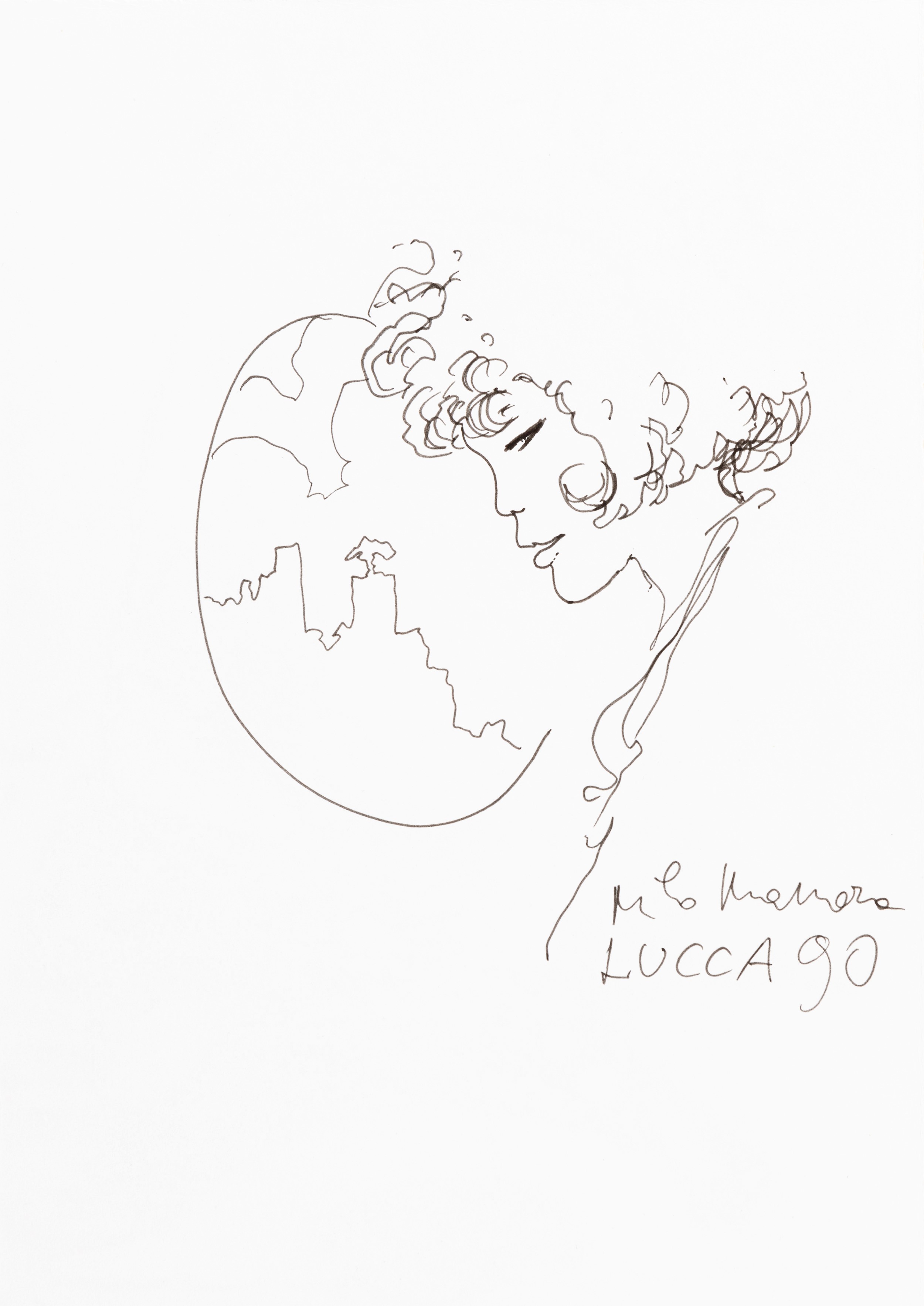 1990 Sketch originale realizzato da Manara in occasione dell'edizione di Lucca Comics del 1990. Proveniente dalla collezione di Saverio Bruschini (tra i fondatori della manifestazione). Firmato e datato.