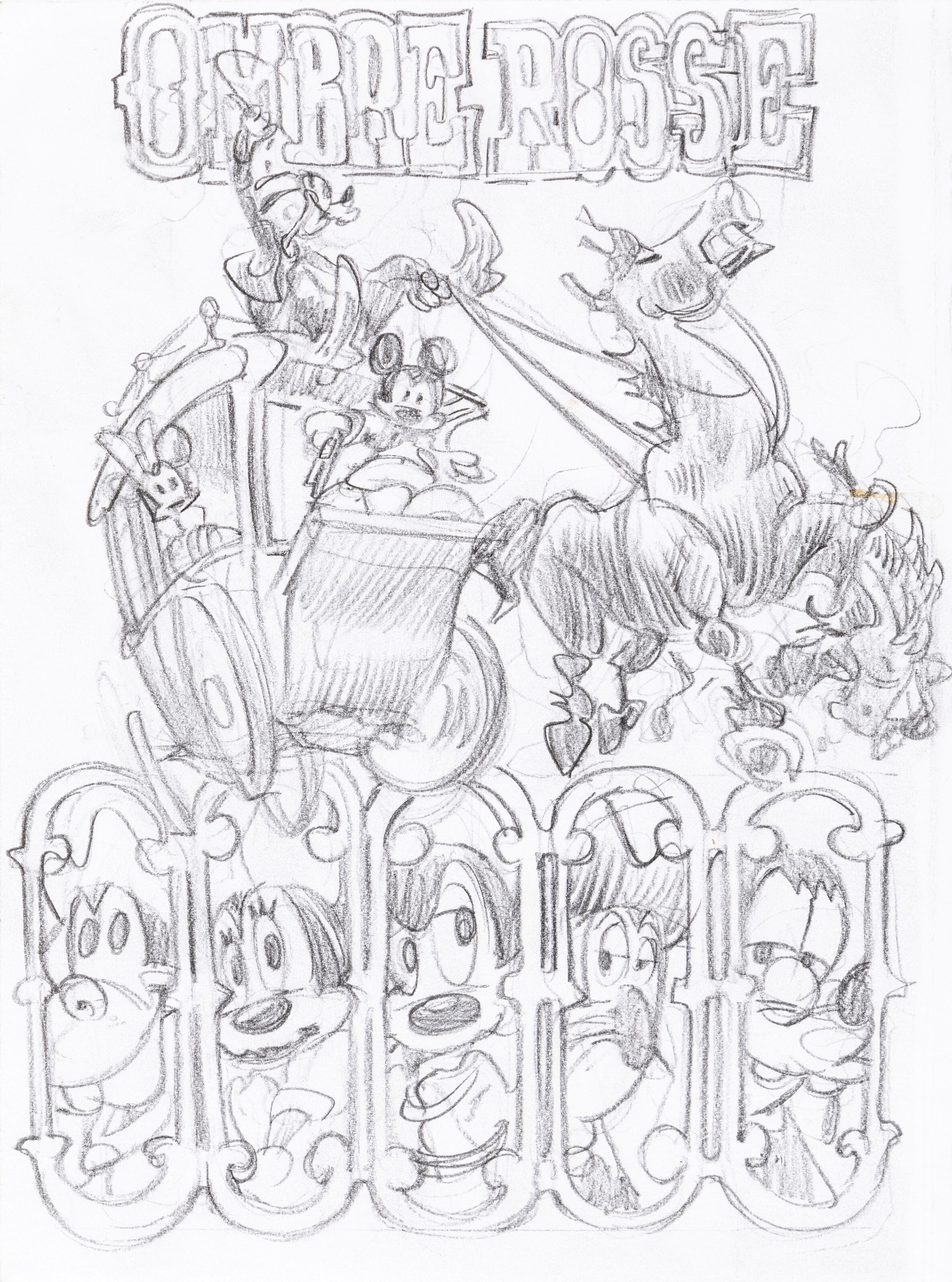 anni 2010 Disegno preliminare realizzato da Mottura per un suo omaggio in stile Disney al film Ombre Rosse.